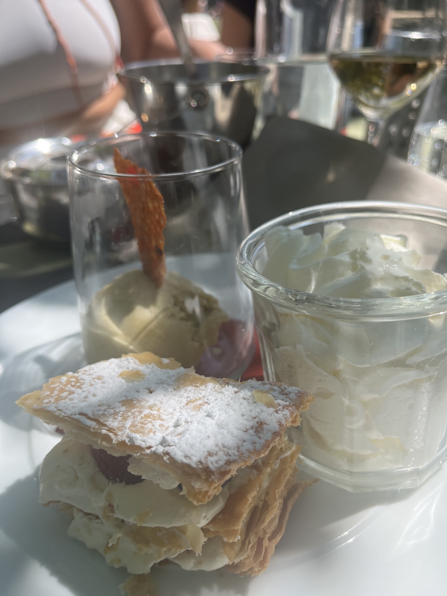 Le restaurant est vide, il est 14h30, nous nous installons sur la terrasse. Nous voulons prendre un thé et le serveur nous demande d'aller nous assoir derrière le restaurant, sur les tables non dressées, à l'ombre et d'aller commander au comptoir. On finit par prendre un dessert à 14€ pour rester sur la terrasse. Le dessert avait aucun gout, une glace à l'eau avec des fraises mauvaises et deux thés glacés servi dans un grand verre, on aurait dit de l'iced tea à 7€, on s'attend à quelque chose de mieux