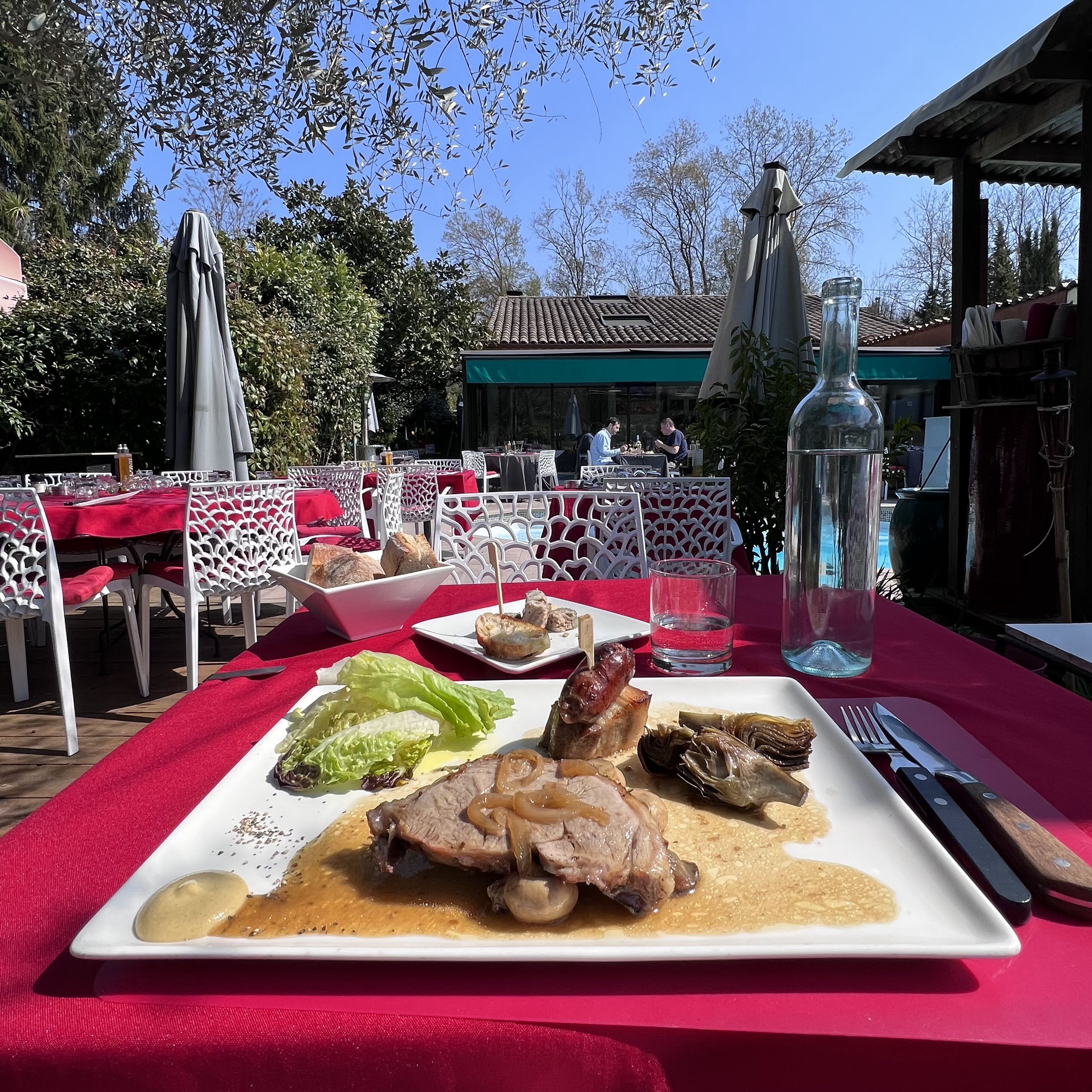 Pour une pause dejeuner gourmande, le patron nous offre un écrin de vacances au bord de la piscine...tout était délicieux, surtout les panisses 😉 et la tarte poires chocolat chaud ! Merci aussi à notre sympathique serveuse...une adresse a decouvrir !!