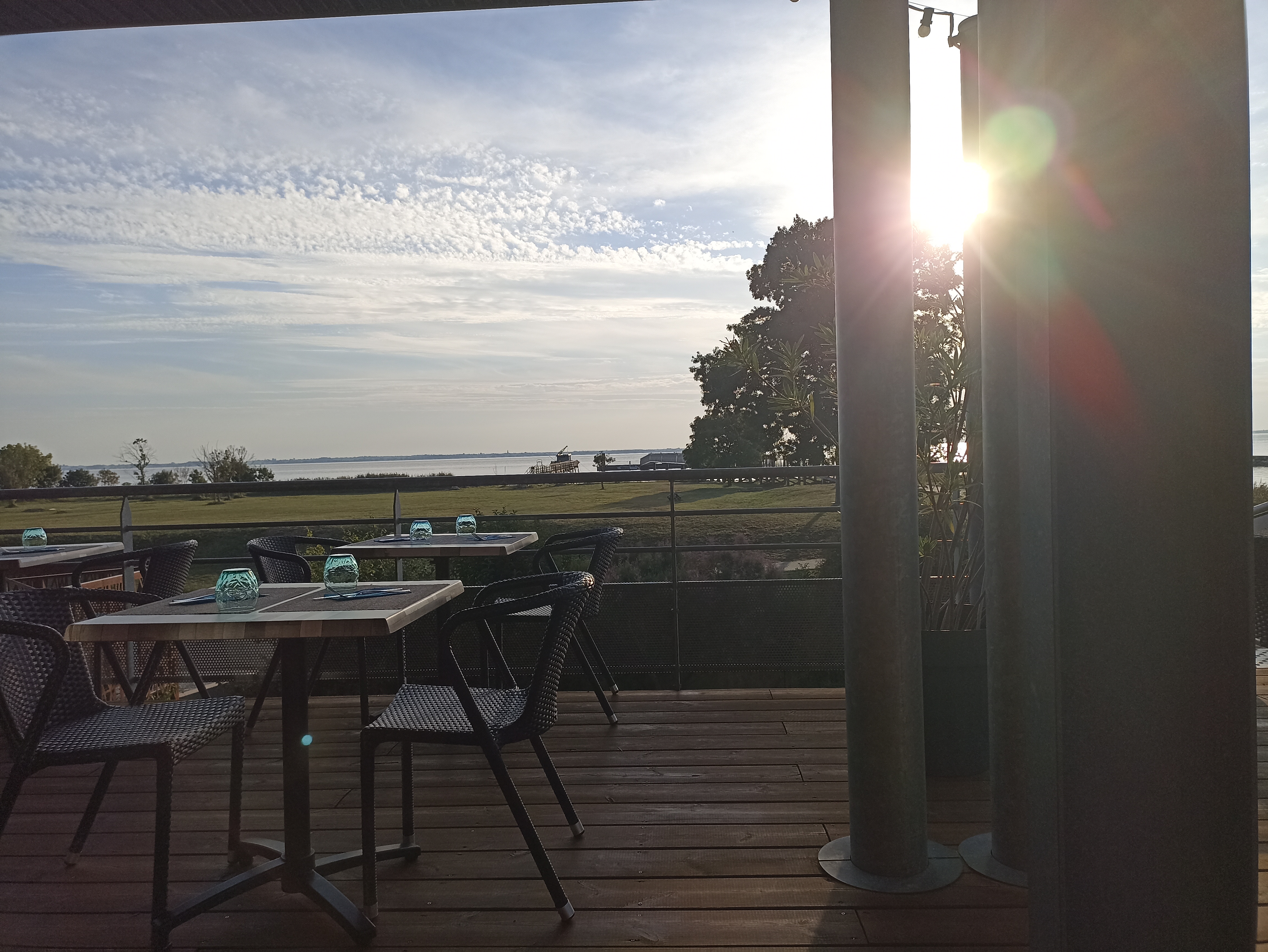 Belle terrasse donnant sur l estuaire et bon rapport qualité prix carte des vins comme souvent un peu cher dommage que l entree en vigueur du pass sanitaire nous empêche d y retourner ...