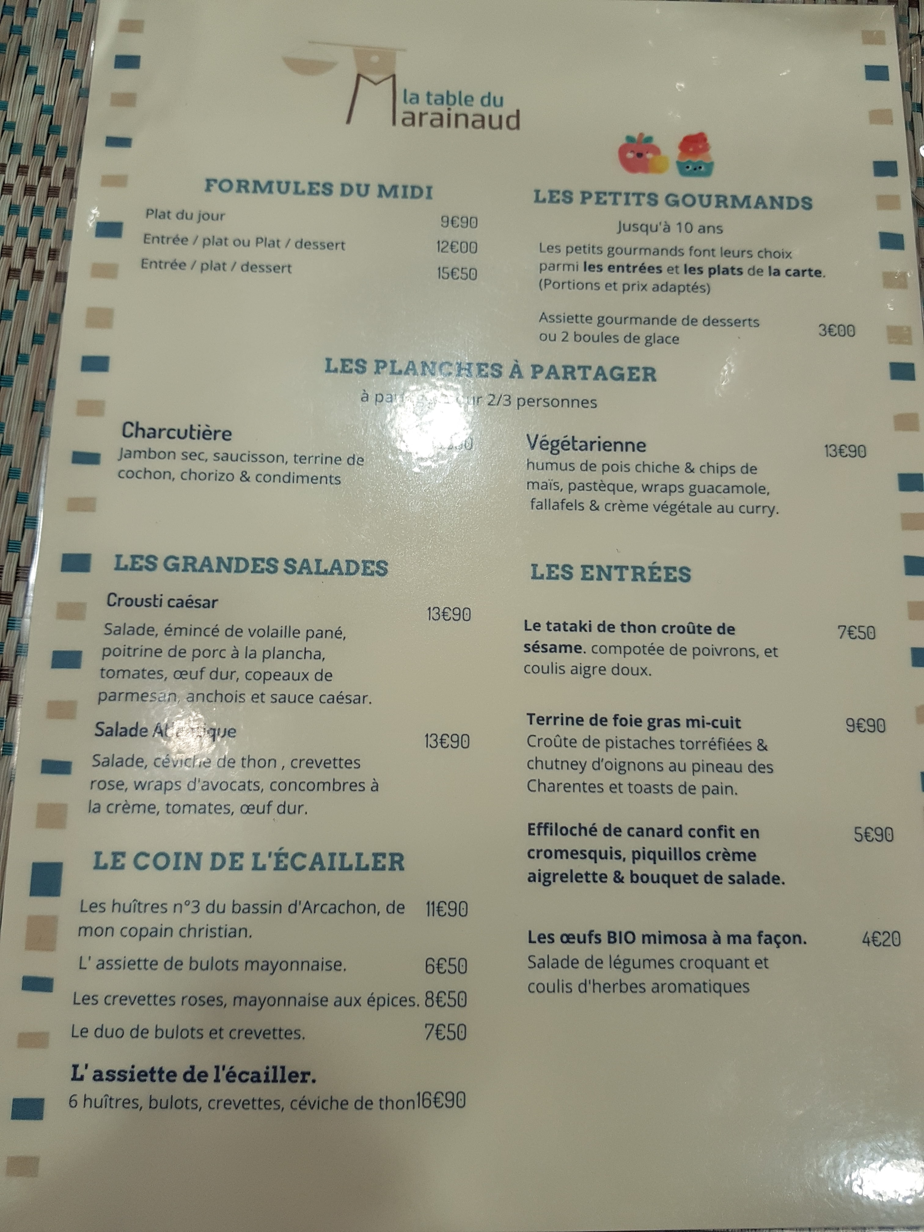 Petite pause à la table du marainaud, Un lieu charmant Une jolie table bien dressé Un très bon repas avec plein de saveurs. Les enfants ont le même chose que les grands à taille réduite Service rapide et sérieux