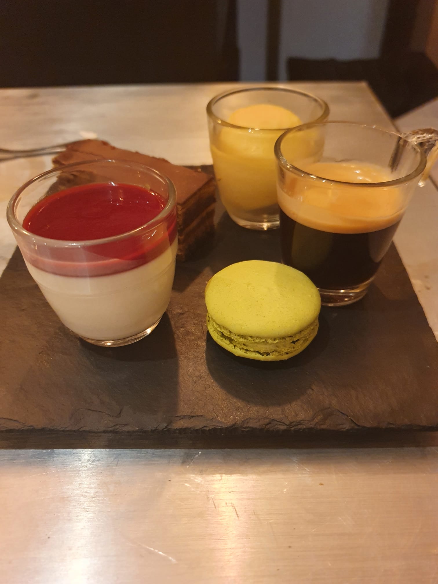 Cadre et serveur sympathique sauf table en inox moyen. Gambas bon mais risotto froid et sans sauveur. Cochon excellent, mais dommage l'assiette était froide. Profiterole très moyenne, le choux est dur et sent le rance, la chantilly ne tient pas et fond trop vite dans l'assiette. Dommage ce petit restaurant mérite mieux.