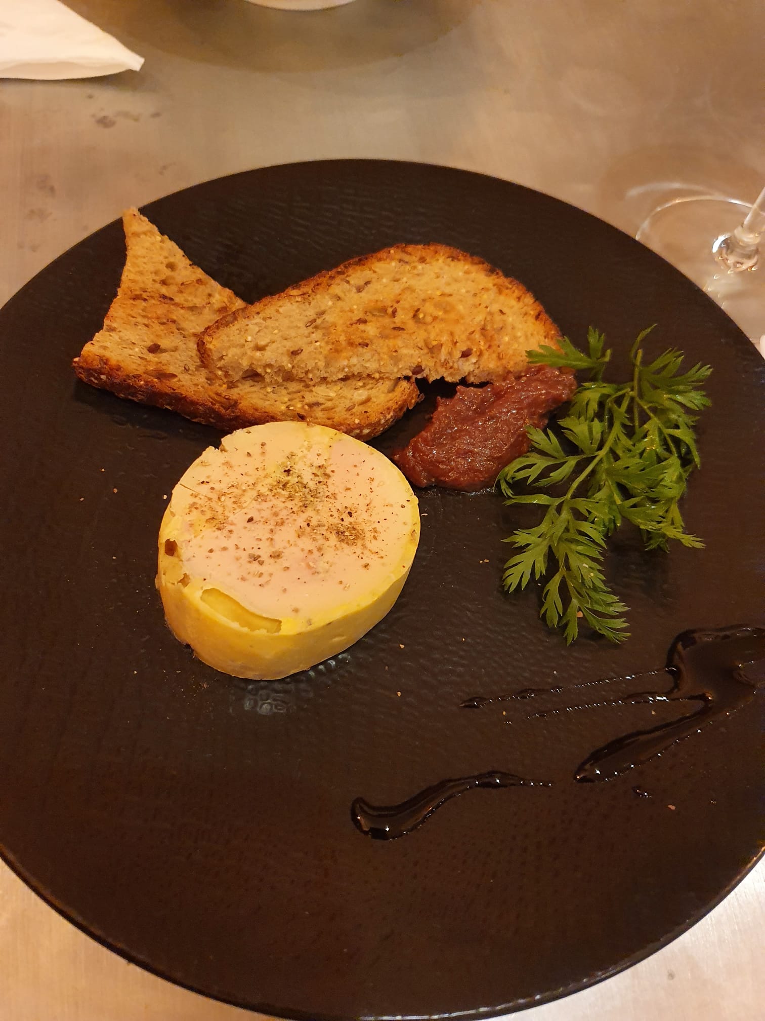 Venue pour le reveillon du nouvel an, j ai été agréablement surprise par le cadre apaisant et convivial du lieu et du personnel. Les plats étaient relativement bons. J ai vraiment apprécié la qualité des produits notamment le chapon accompagné de polenta. La volaille était tendre et avait du tout. Je vous conseille d aller découvrir ce restaurant
