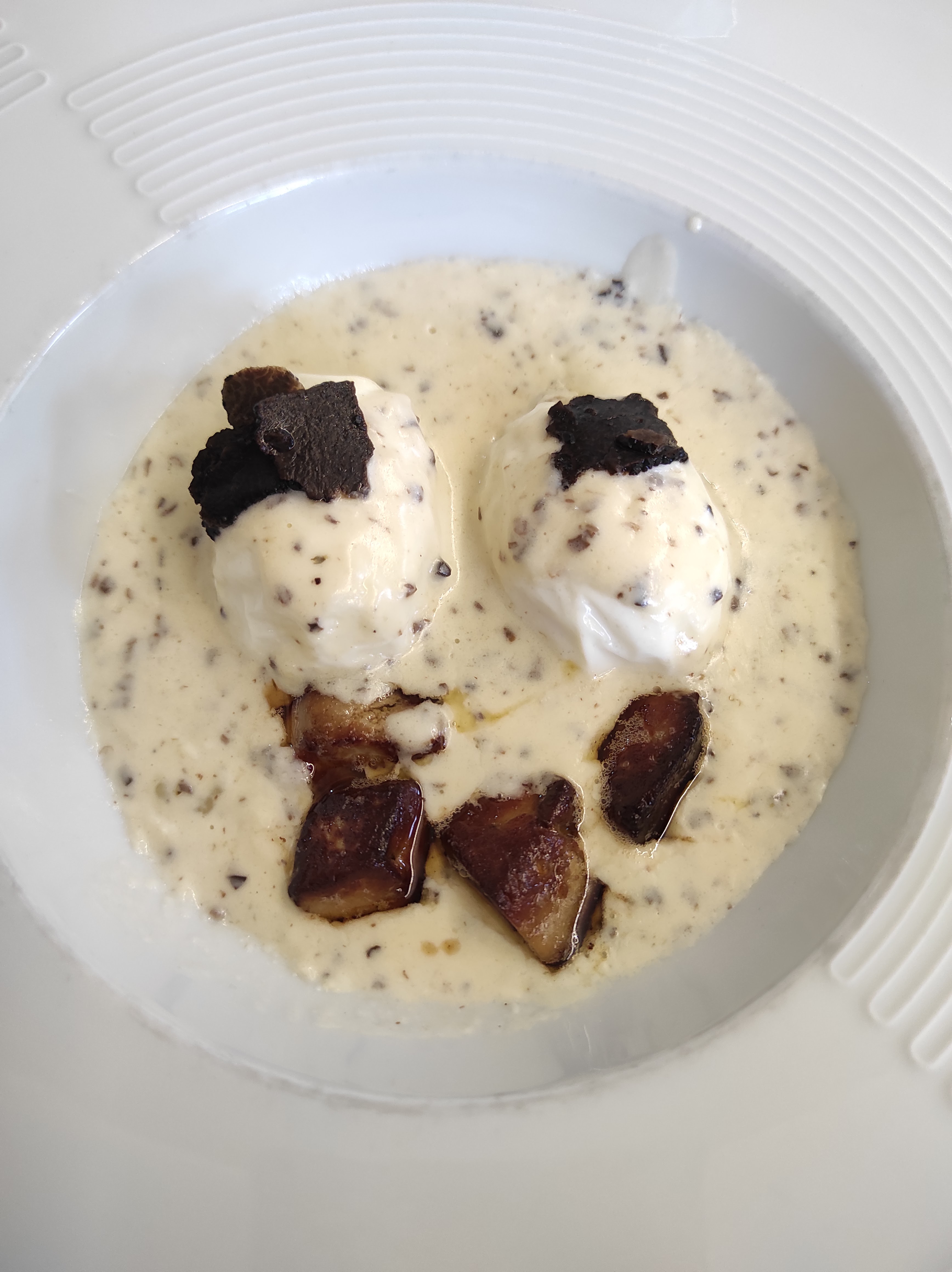 Les oeufs parfaits à la truffe et au foie gras étaient divins, les cèpes cuites à la perfection. Nous étions déjà pleins mais j'avoue que j'aurais bien cédé aussi à l'entrecôte de l'Aubrac qui avait l'air délicieuse (une cliente a même dit ça coupe comme dans du beurre). Bref... Le charme d'une cuisine authentique aux produits frais, d'un couple de restaurateurs bienveillants et de leur chef qui en font un endroit incontournable de Prayssac. Un déjeuner parfait en amoureux.