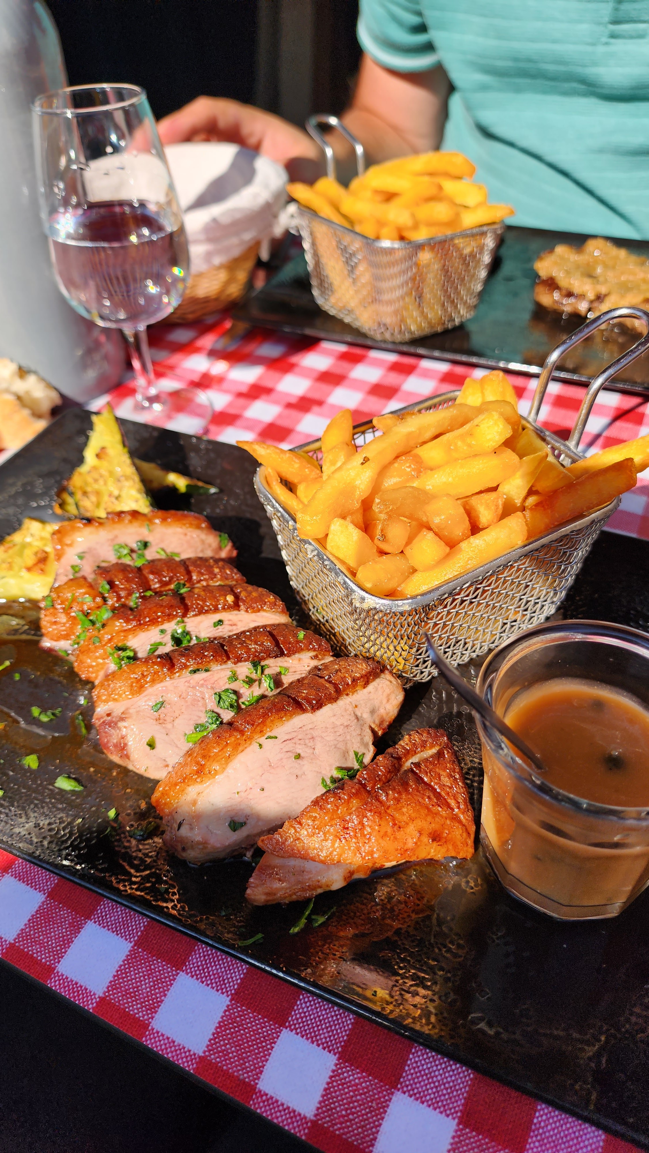 Très bon au niveau gustatif, le délai entre les plats trop long. L'apport de basique (pain et couteau à viande) absent ou en retard. Nous avons écourté notre repas (1h30) pour arriver à la fin du plat de résistance. Merci
