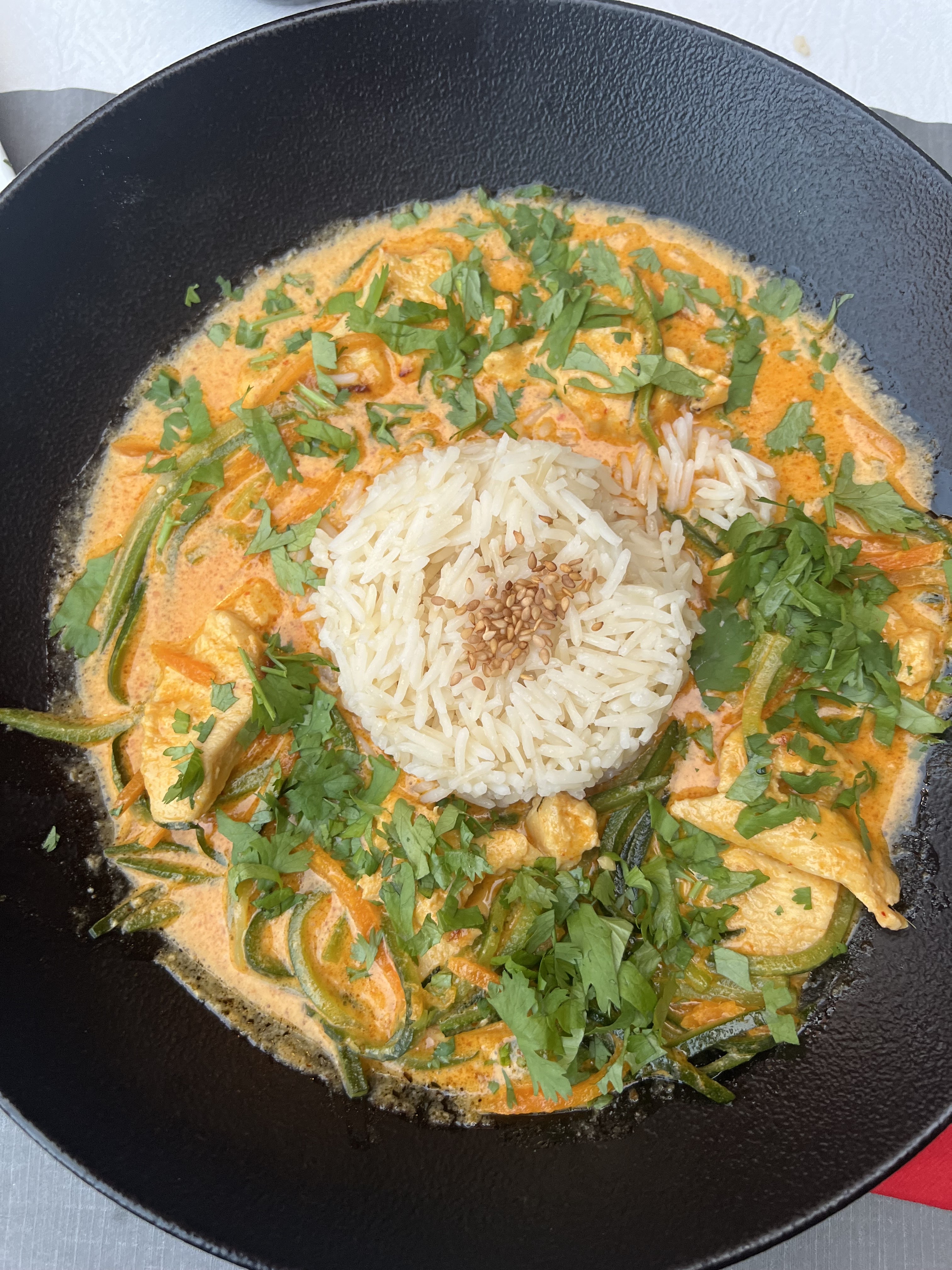 Très belle endroit gustatif. Produits frais. Service rapide. Important de réserver. Poulet curry j ai adoré. Dessert fait maison.