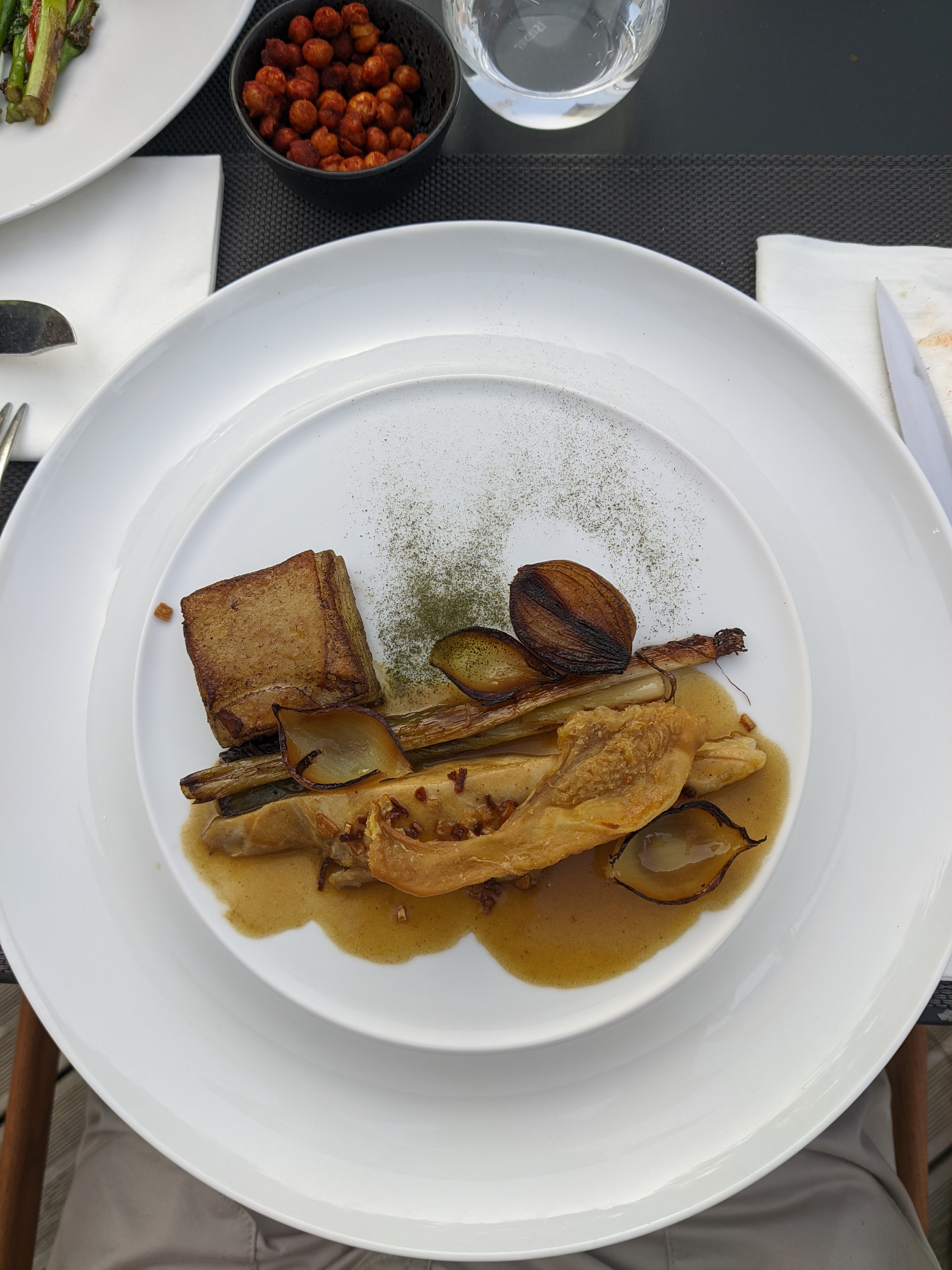 Nous avons pu profiter au sein de ce cadre magnifique en terrasse d'une soirée très agréable. Les plats très imaginatifs avec de belles présentations nous ont beaucoup plu. Tout ceci accompagné d'un service très attentionné. C'est sûr nous reviendrons.