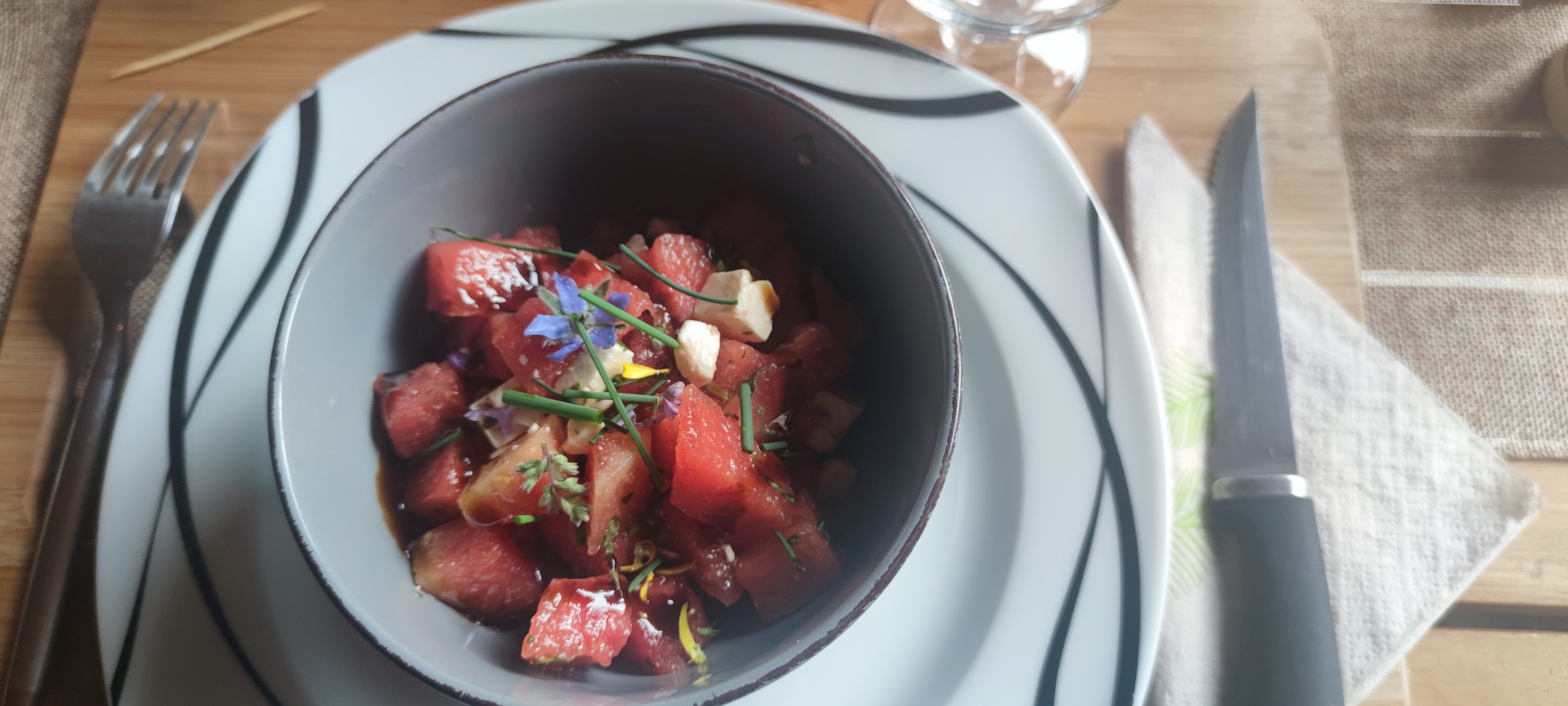 Concept original. On a passé un bon moment, au calme et au frais avec un bon repas.