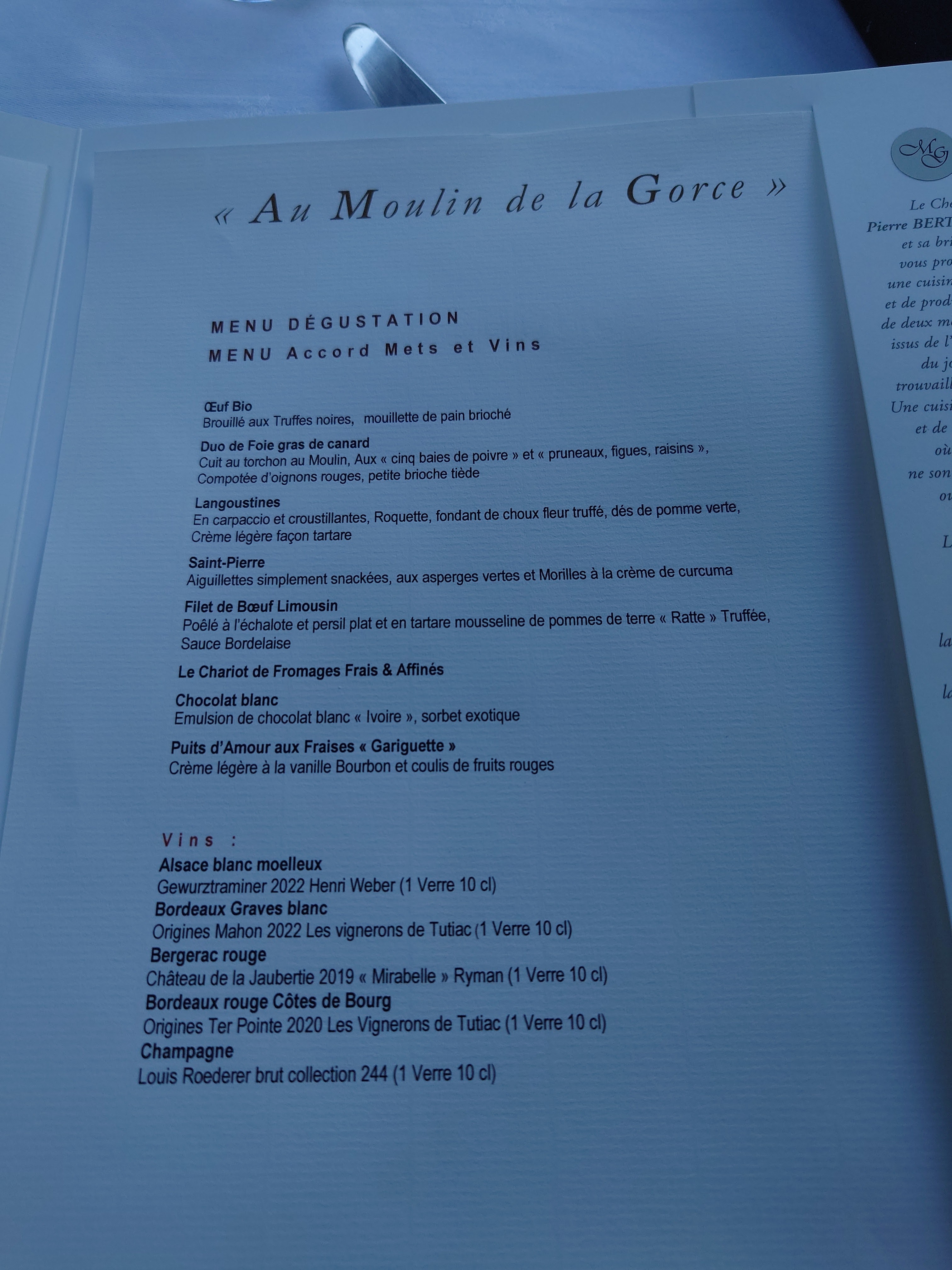 Tant que la Table du Moulin est transféré au Moulin de la Gorce, à éviter, le chef ose servir un faux filet dur, immangeable, avec une carte au choix très réduit, au cœur du Limousin c’est navrant...une patronne anti commerciale au possible. A croire que la clientèle des menus à 105€ soit moins bien traitée que celle des menus à 28€?? Attitude déconcertante des Patrons du Moulin de la Gorce, qui semble n’avoir que faire de la « petite clientèle » de « la Table » qu’ils traitent avec mépris... pas de quoi être fier de proposer un menu de « gargote » dans ce très beau lieu. Très décevant. Heureusement notre serveur était lui, à la hauteur... Dans le lieu habituel tout s’était Toujours parfaitement passé tant sur le plan culinaire que sur le plan service.
