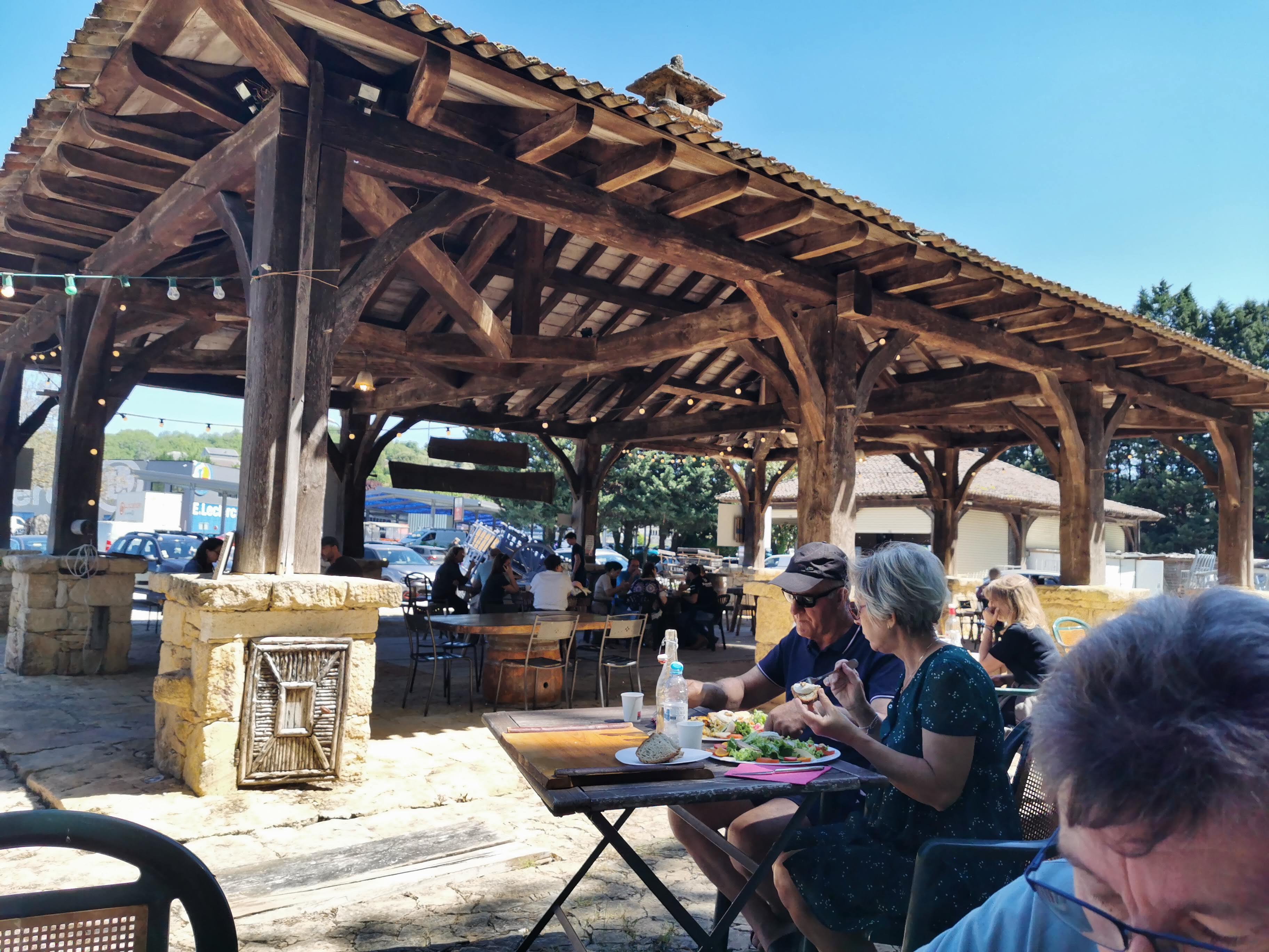 Sous la halle vous sera donné un repas avec des salades et grillades locales. Bon esprit et qualité des produits avec un achat avant à côté chez les producteurs.