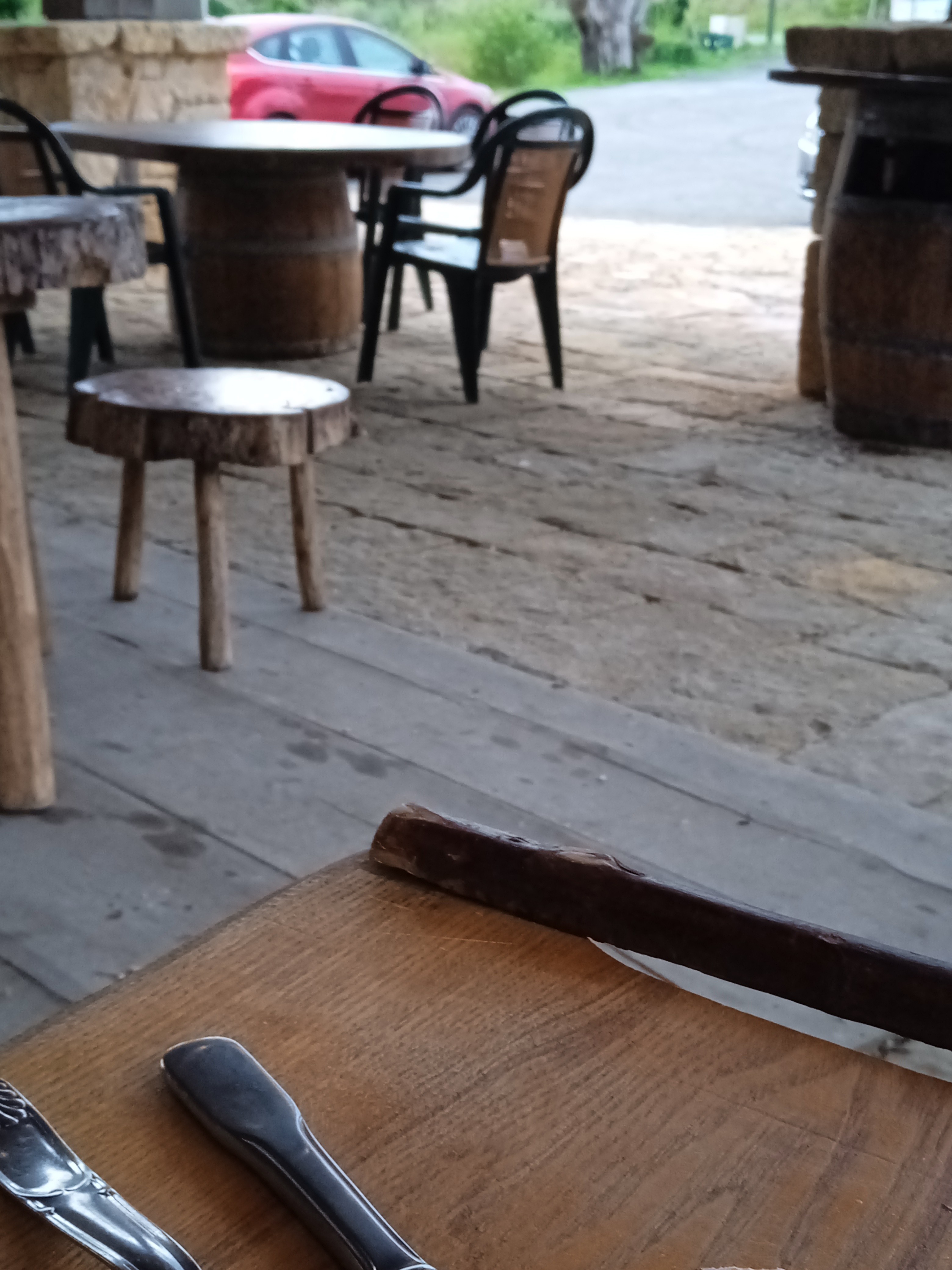 Excellent resto qui change vraiment de l ordinaire on mange sur des tables taillée directement dans le bois et les assiettes super copieuses Pour 15€