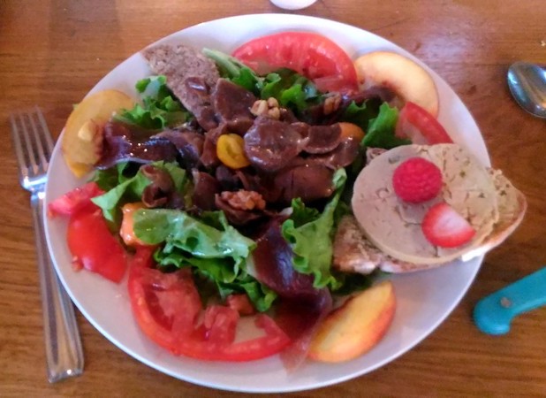 Salade fraîche accompagnée de fruits frais. C'est très original et local. Je recommande