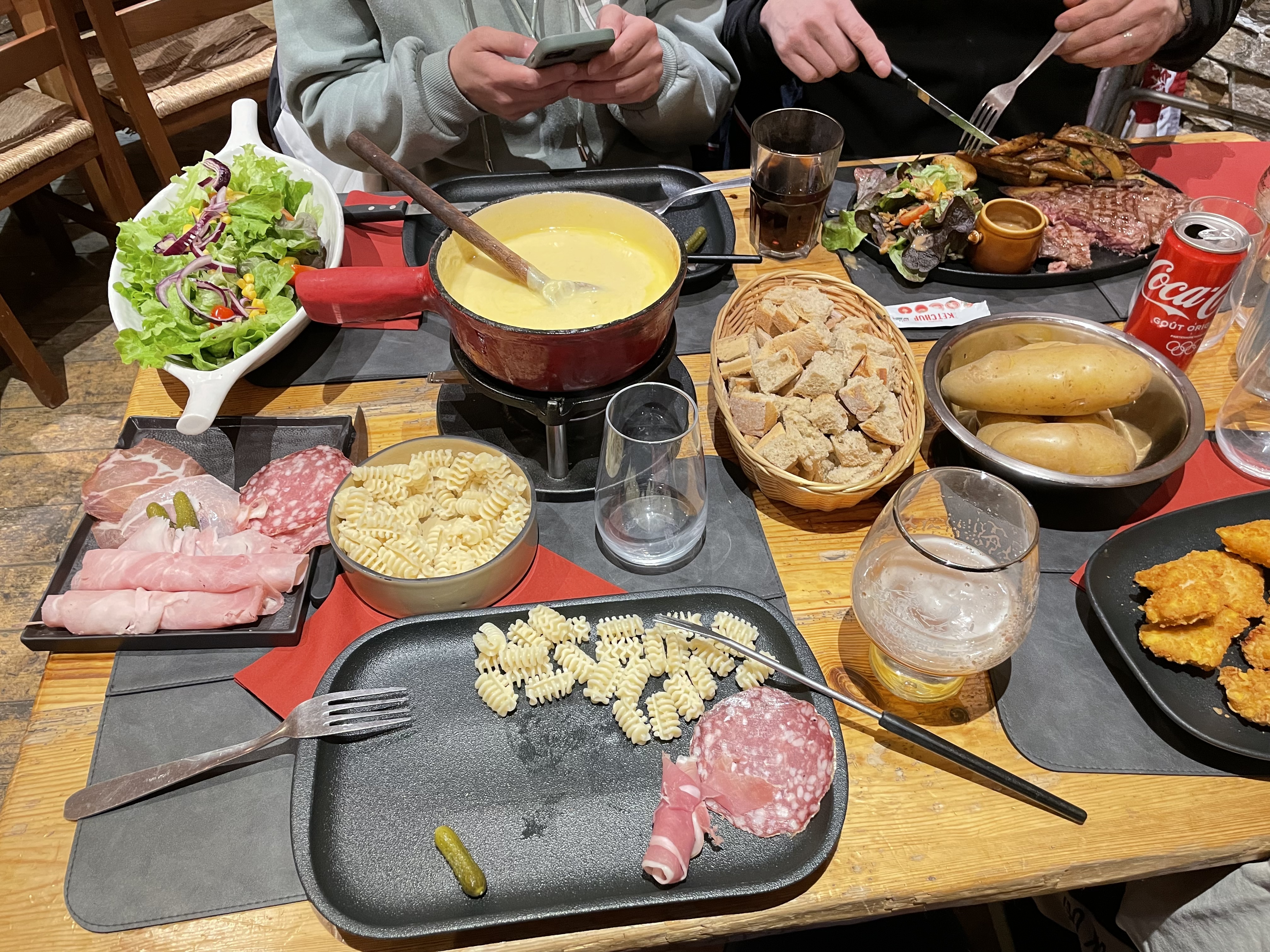 Super soirée, les serveurs sont super sympas! Les plats compieux. Une fondu savoyarde accompagné de pommes de terre, de pâtes et de charcuterie. Un menu enfant avec des nuggest fait maison. Rien à dire, tout étaient super bon. Nous allons y retourner pour goûter leurs chocolats chaud kinder ☺️
