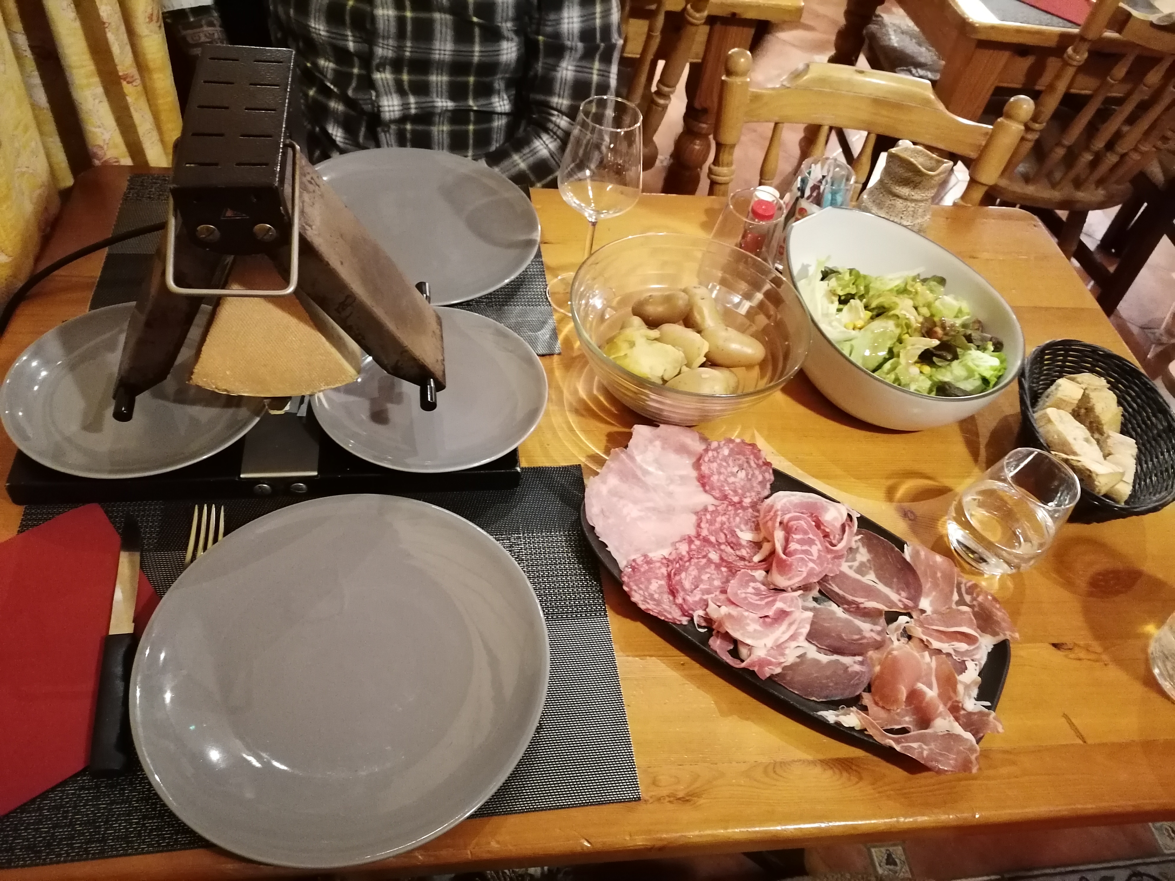 Nous avons manger raclette a 4, un seul fromage pour 4, une seule portion de charcuterie pour 4 et une seule portion de pomme de terre pour 4. Ce qui fait pas beaucoup. Alors oui c'était bon mais payer 25e la part de raclette pour avoir 3 pomme de terre 1 jambon c'est chère. Quand on redemande de la charcuterie on nous dit que c'est en supplément donc si on veut manger 2 jambon et bah cest pas 25e par personne mais 30e . Fin bon dommage car sinon c'est bon et le personnel est sympa. Je recommande quand même mais faite attention si vous prenez une raclette a plusieurs.