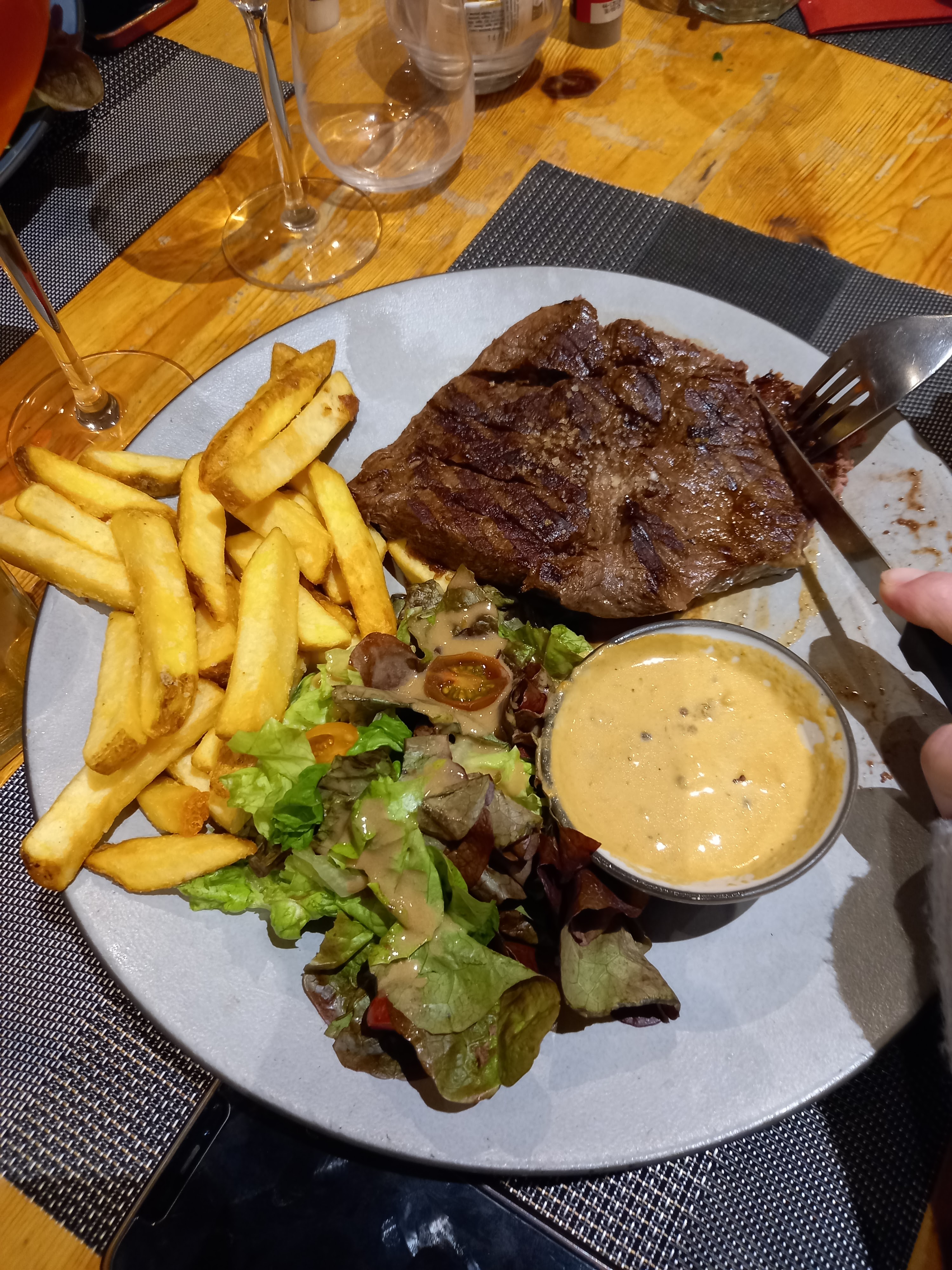 Vraiment pas terrible... le serveur est hautain et l'entrecôte est caoutchouteuse Prenez la pierrade et faites cuire votre viande vous même, vous apprécierez plus!