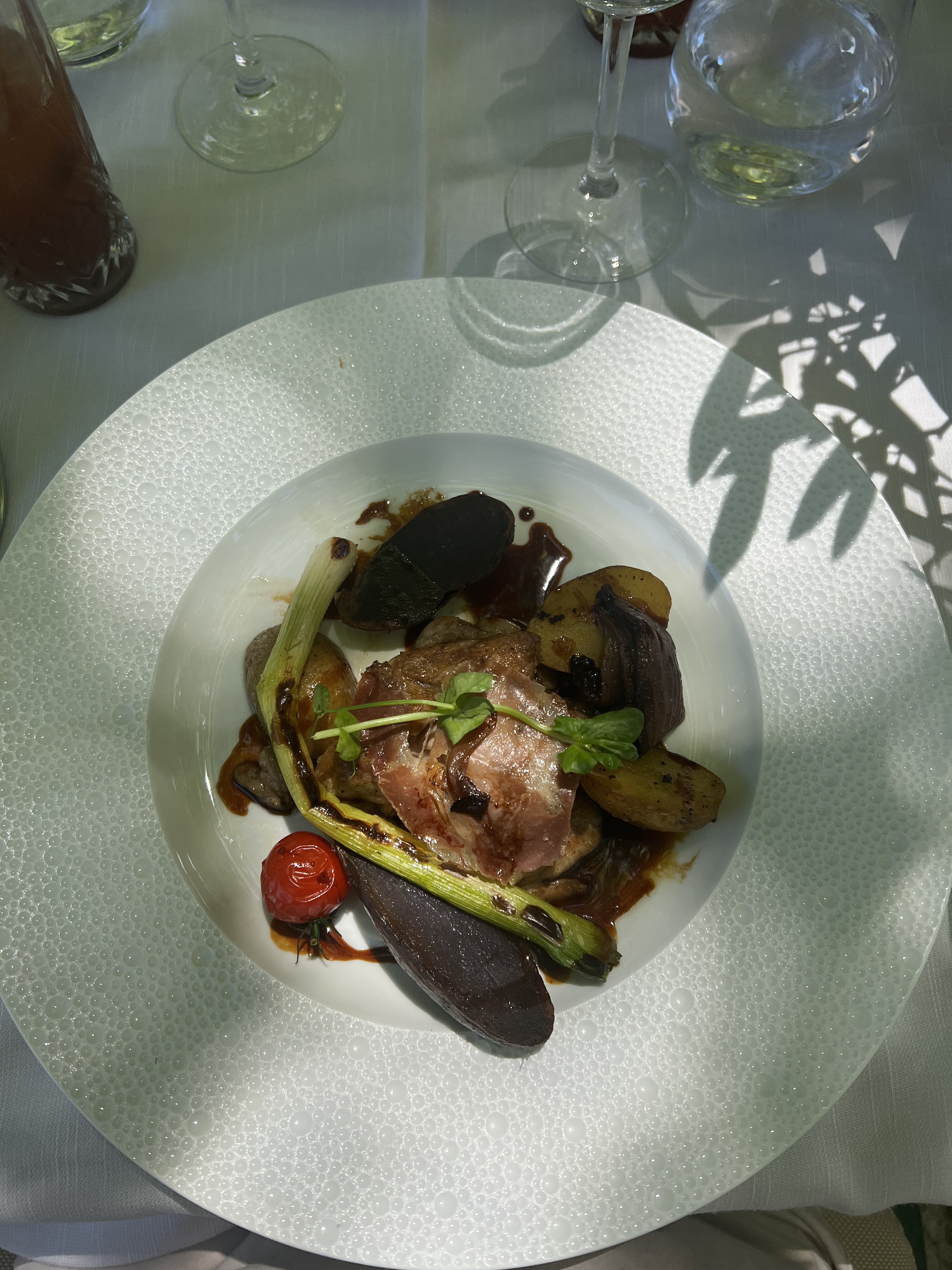Restaurant de qualité, nous y retournons tous les ans, même si cette année les choix sont un peu limités, on a apprécié d'avoir au menu un plat végétarien. Le cadre est toujours magnifique dans le très beau jardin de l'hôtel.