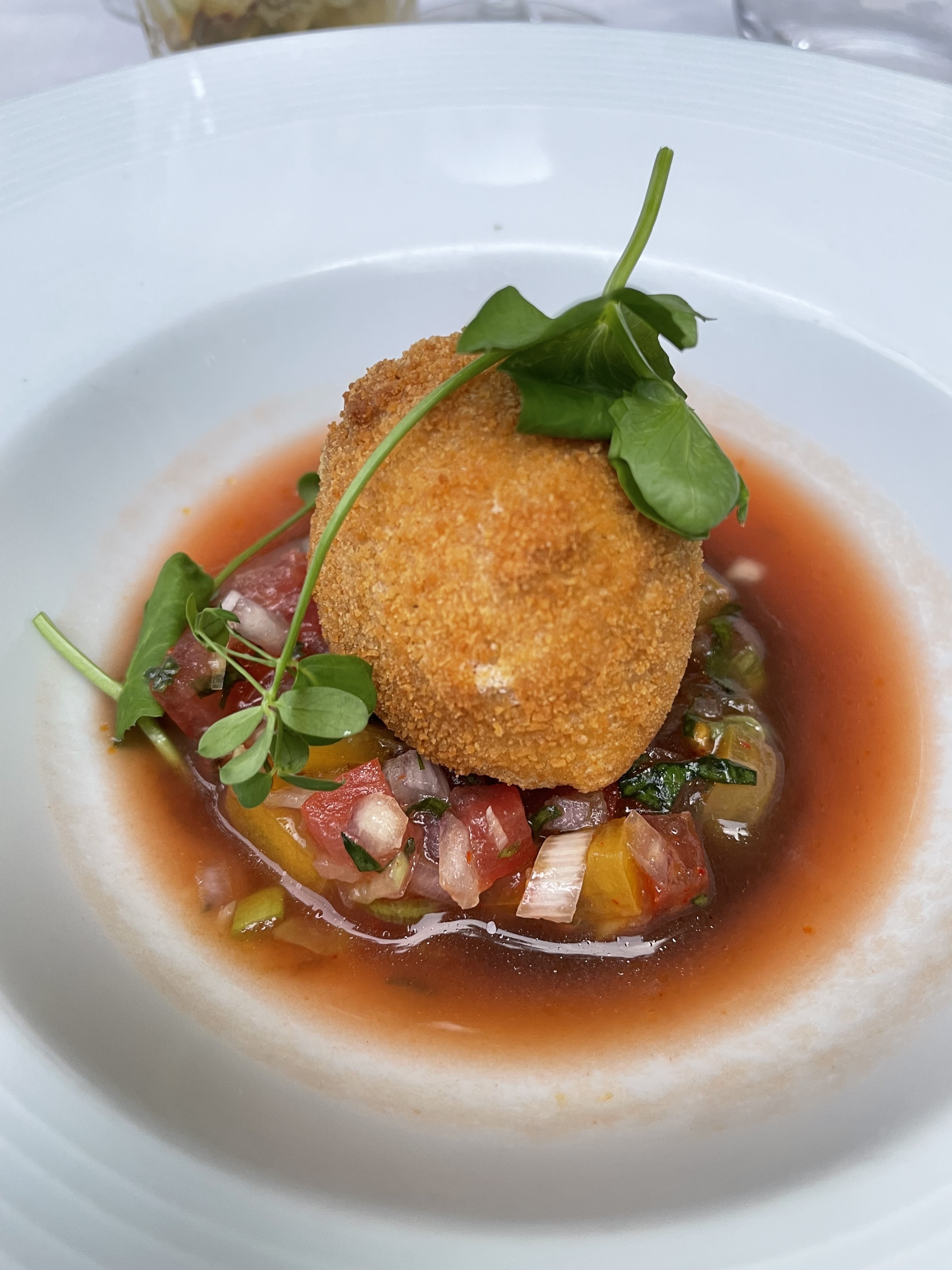 Magnifique endroit, ambiance feutrée et plein de classe. Un très bel extérieur également. Le service au dîner était parfait, attentionné et professionnel. Quand au repas lui même, le menu gourmet avec accord sur les vins a été à la hauteur de nos attentes. Une belle et bonne table.