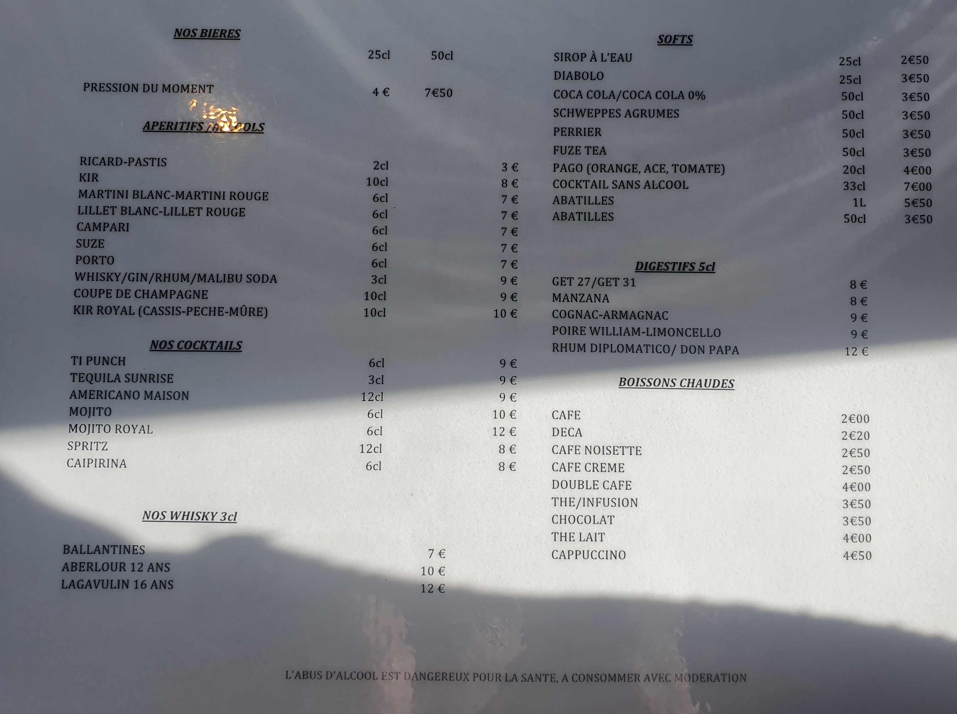 Accueil détestable ! La personne en salle probablement la patronne est très désagréable et pas du tout commerçante! Nous sommes arrivés à 13h30 avec ma maman de 90 ans pour déjeuner il y avait de la place sous une terrasse couverte mais elle n’a pas voulu débarrasser les tables! Nous ne regrettons pas car en sortant nous avons croisé une dame qui nous a dit que la nourriture n’était pas bonne du tout !!