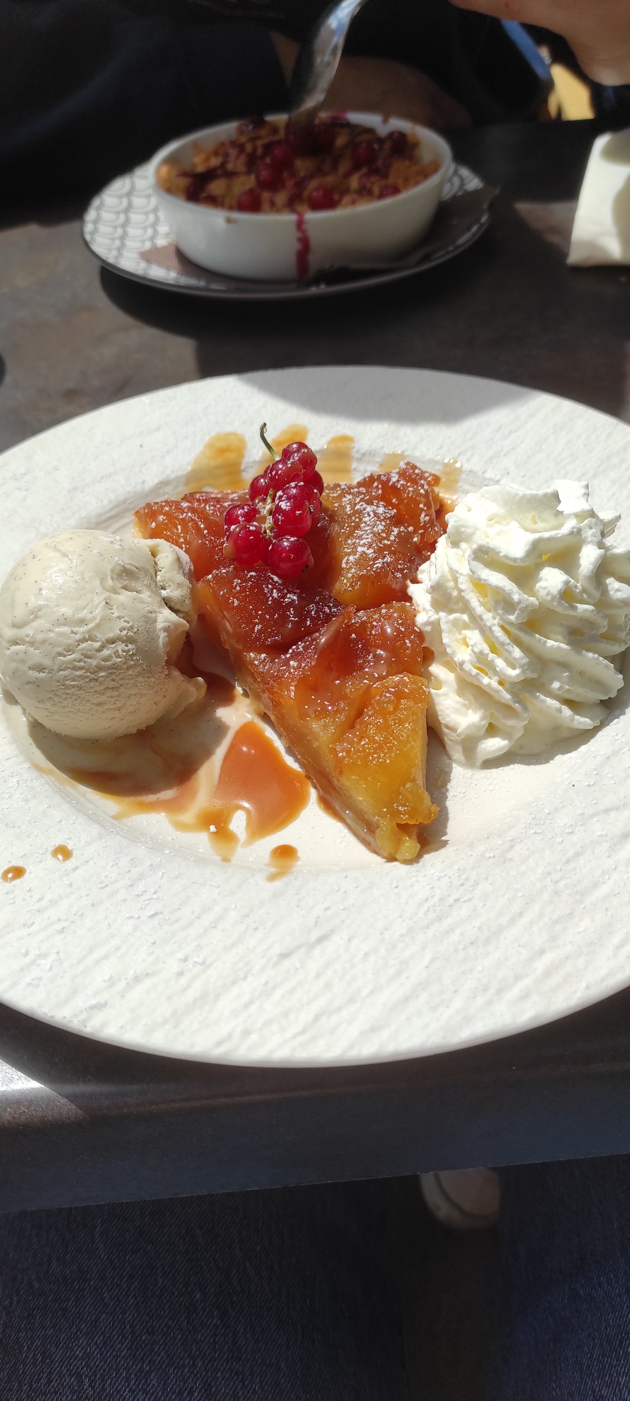 Nous avons mangé sur la terrasse au soleil et nous avons passé un bon moment. La cuisine est faite maison, généreuse et savoureuse ! Nous avons adoré :) Service au top, merci