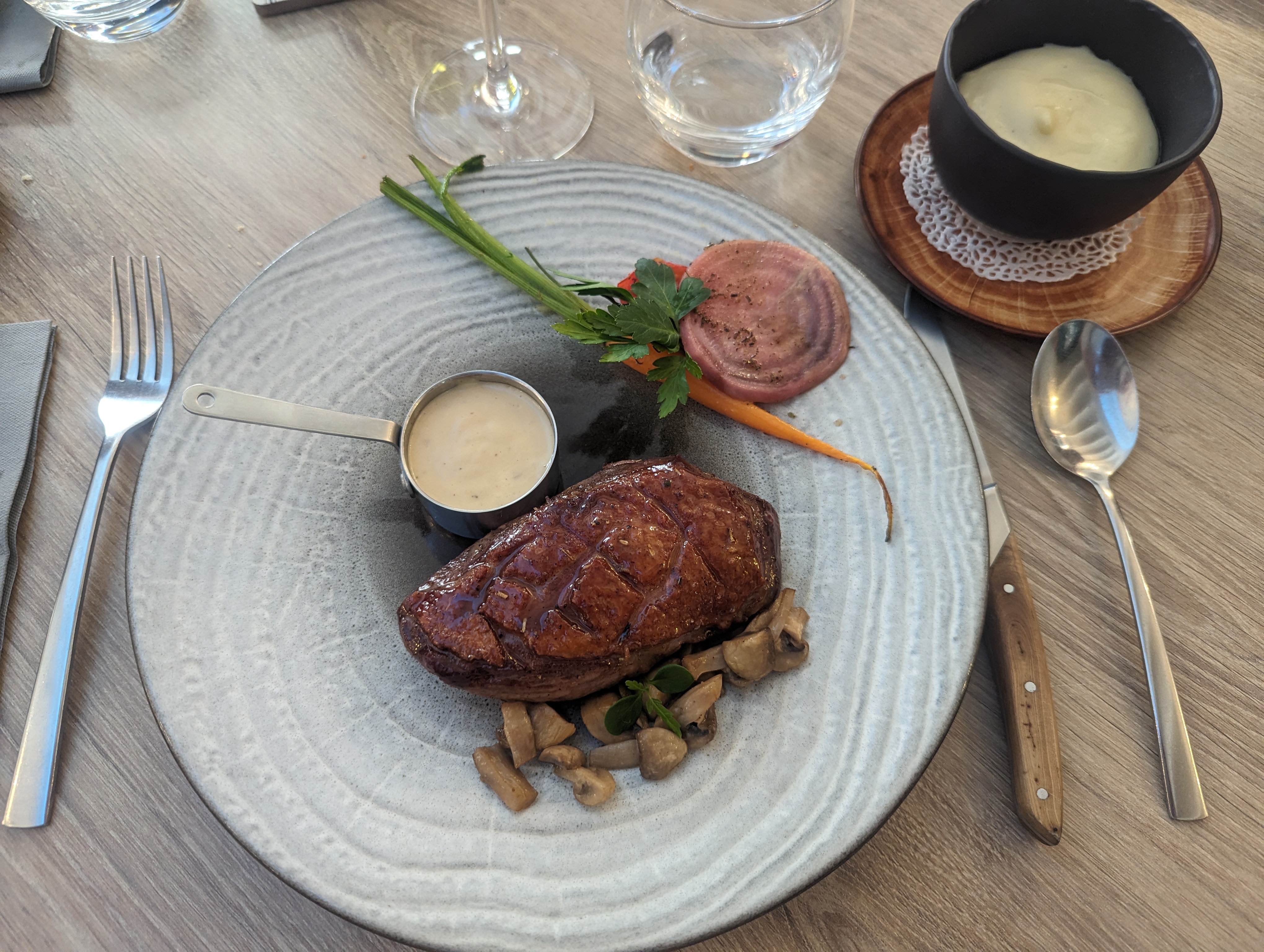 Au détour d’une petite rue, nous sommes tombées devant ce petit restaurant qui privilégie la qualité à la quantité des grands services ! Une cuisine incroyable, le chef m’a réconcilié avec le fenouil ! Incroyable cannette et je ne parle même pas des desserts ! Merci à son épouse au service, qui a été adorable. Quelques photos pour vous mettre en appétit, allez y c’est une pépite !