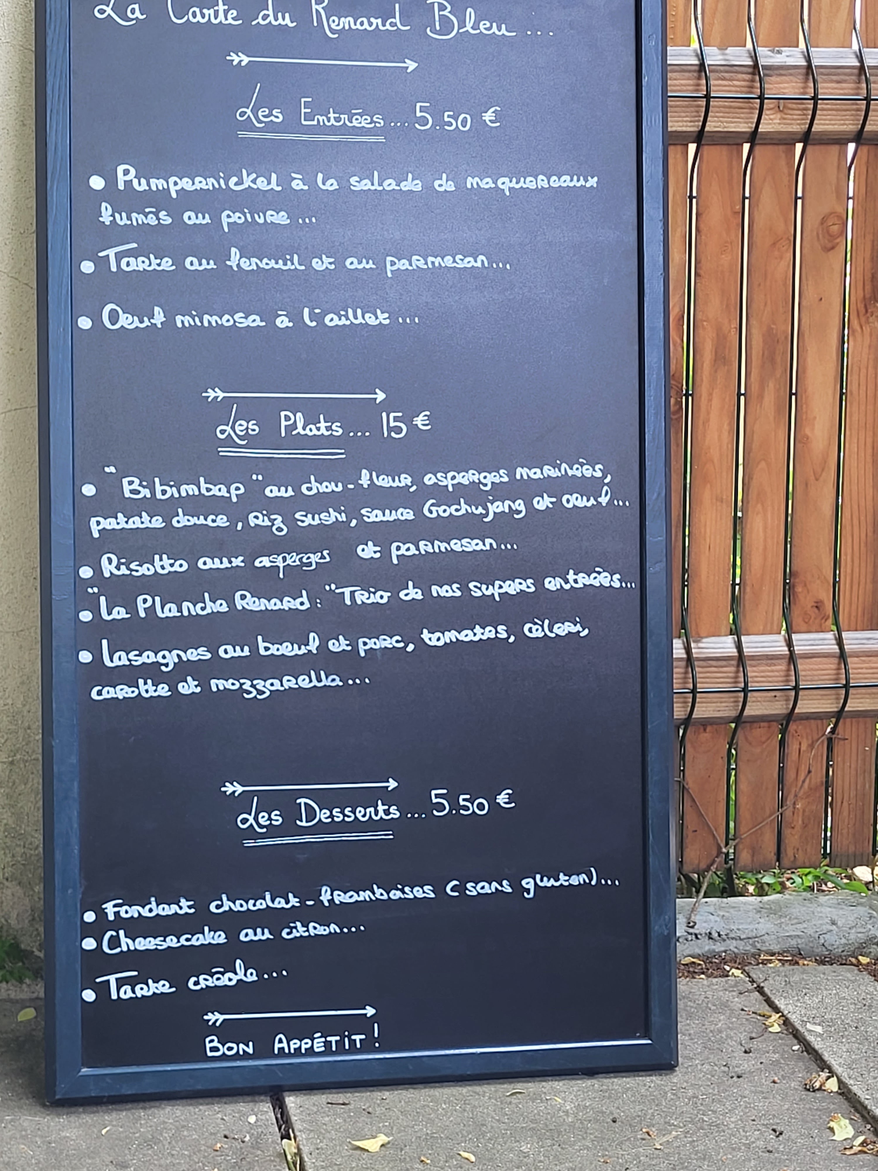 Nous y allons de temps en temps, toujours avec le même plaisir. Le bled de Latresne est charmant, le lieu où se niche le Renard bleu tout autant. Le jardin terrasse, en saison, est divin. Les gérants, Stéphanie et Sébastien, leur équipe sont plus qu'adorables. Et les mets proposés sont rudement bons. Les prix, vraiment abordables. La tranquillité est aussi au rendez-vous, ce qui est déjà un luxe absolu. Alors franchement, si vous hésitez encore à franchir l'autre rive pour venir les saluer avant de vous attabler, c'est que notre monde ne tourne plus rond du tout... A la fois prochaine, et un poutou à L!