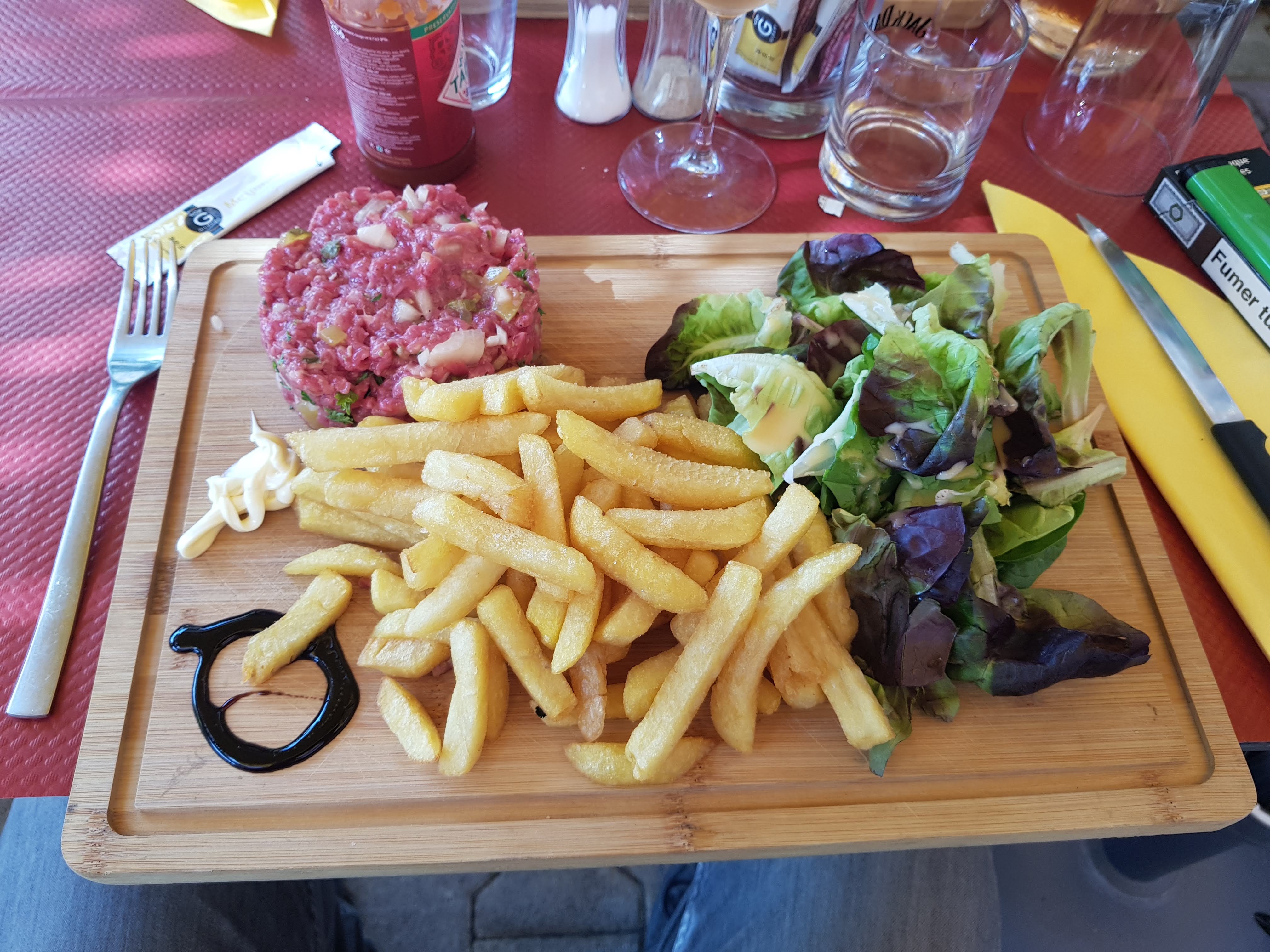 À l’occasion d’une halte sur le coin, j’ai naturellement recherché une table avec une bonne viande pour me redonner le moral… Bingo !!! Bien au delà de mes attentes et d’une façade pas plus attrayante que ça, j’ai été accueilli par les propriétaires avec un sourire qui m’a immédiatement conquis … Une patronne au service irréprochable, un patron « bon vivant » qui connaît son sujet et qui saura vous régaler de ses achats de viandes pour votre plus grand plaisir avec une planche garnie de sa pièce de viande et ses accompagnements à un prix imbattable ! N’hésitez pas à lui demander conseil : il saura vous satisfaire ! Bravo à eux et surtout…. merci. N’hésitez pas. Foncez !