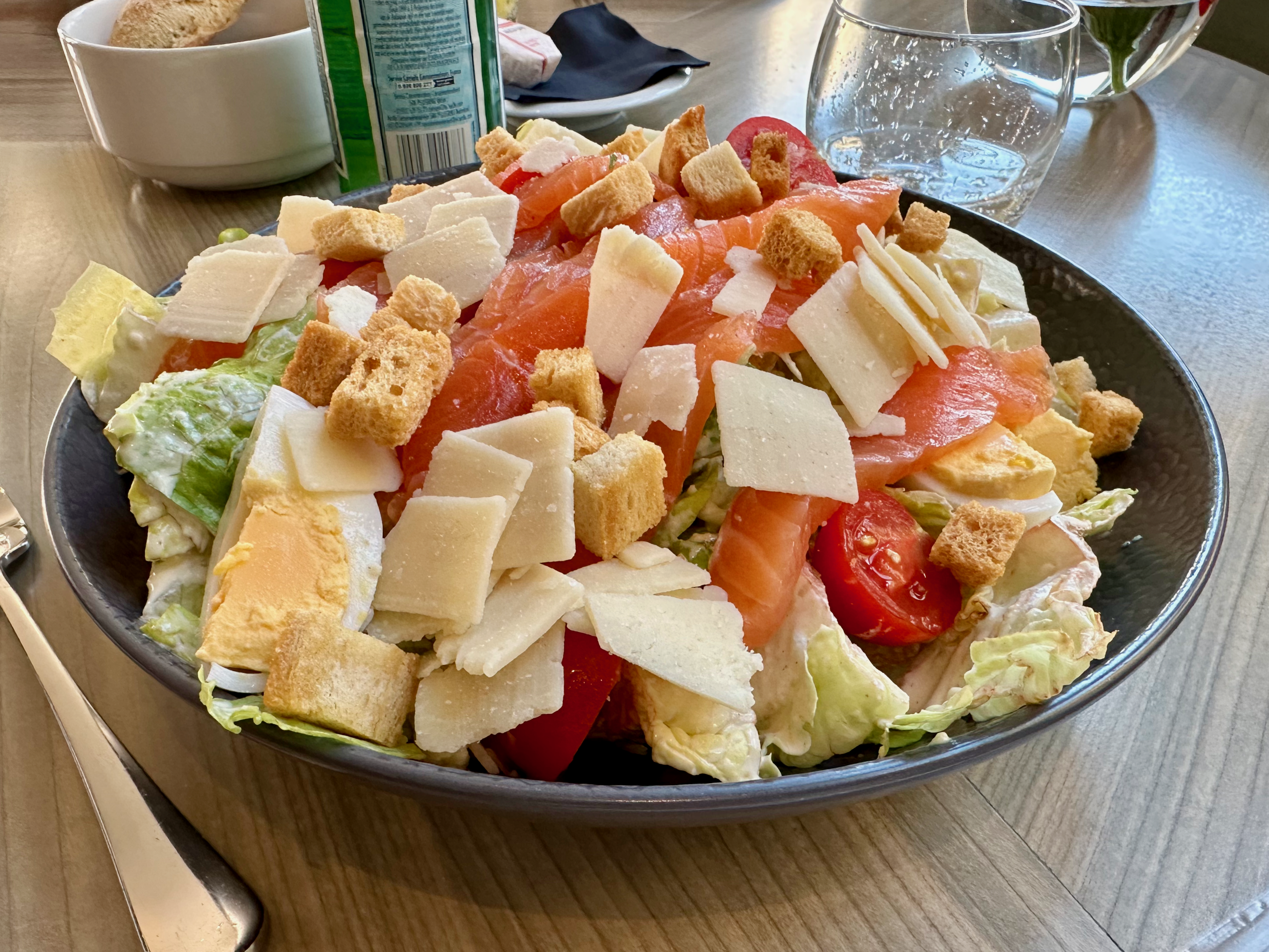 Nous avons séjourné au Grand Hôtel Roi René lors de notre séjour à Aix-en-Provence. Nous avons exploré la ville avant l'ouverture de la plupart des restaurants, nous sommes donc retournés à l'hôtel et nous sommes installés au restaurant sur place, La Table du Roi. Je pense que « réglé » résume en grande partie notre repas. C'était certainement pratique, mais le restaurant n'était pas aussi satisfaisant que la chambre et la propriété dans leur ensemble. La nourriture était moyenne. J'ai mangé beaucoup de salades lors de notre voyage et celle-ci n'était ni bonne ni mauvaise. Le service, malheureusement, laissait à désirer, même selon les normes françaises filtrées par mon point de vue américain. De plus, le restaurant semblait être une zone de circulation menant à la piscine. Une distraction comique, en attendant sur mon serveur, était la boucle qu'un pigeon local faisait dans la salle à manger ! Dans l'ensemble, ce n'est pas un mauvais restaurant, mais pour le prix, je suis presque certain que vous pouvez faire mieux en vous promenant à quelques pas de la vieille ville.