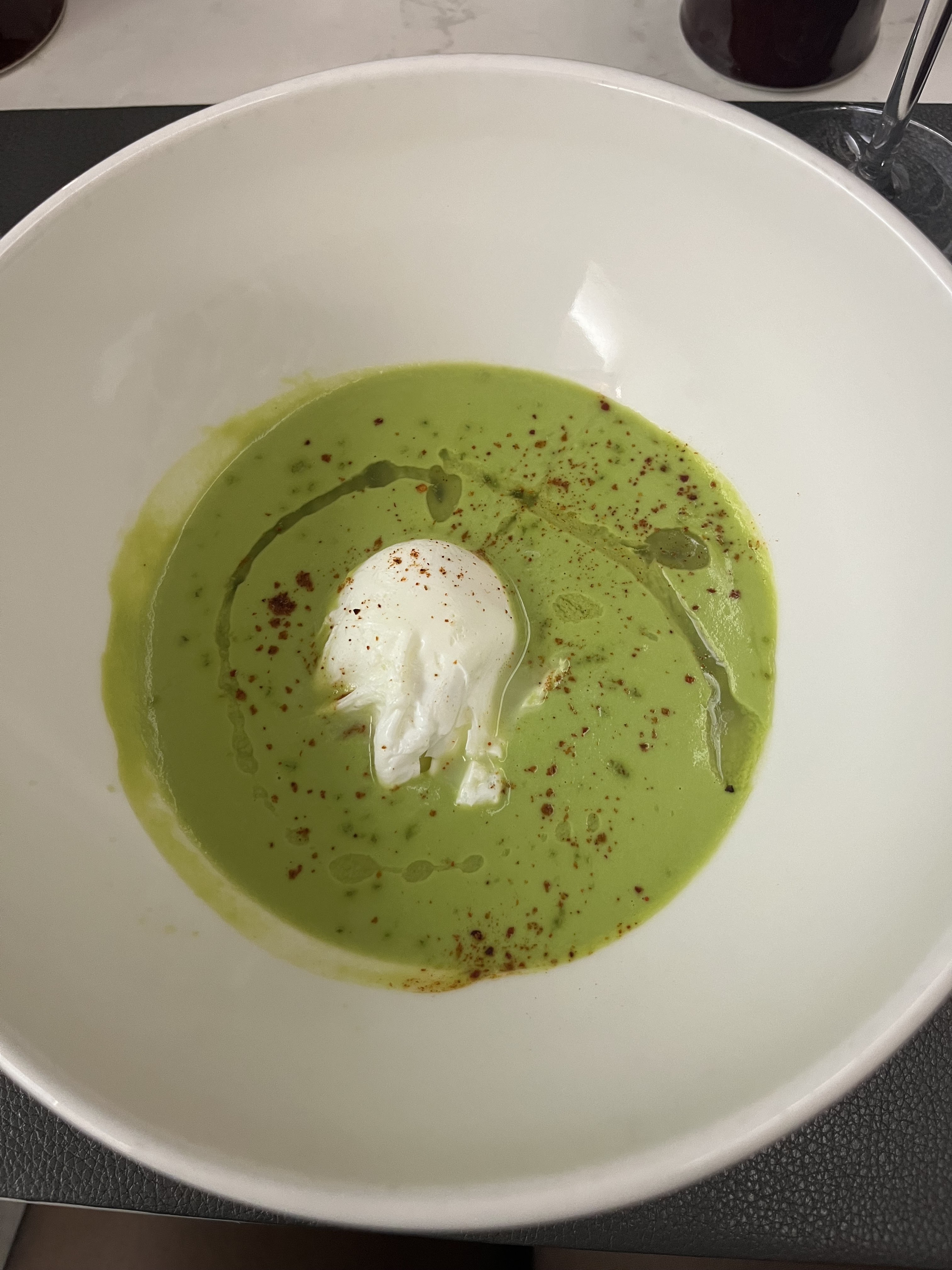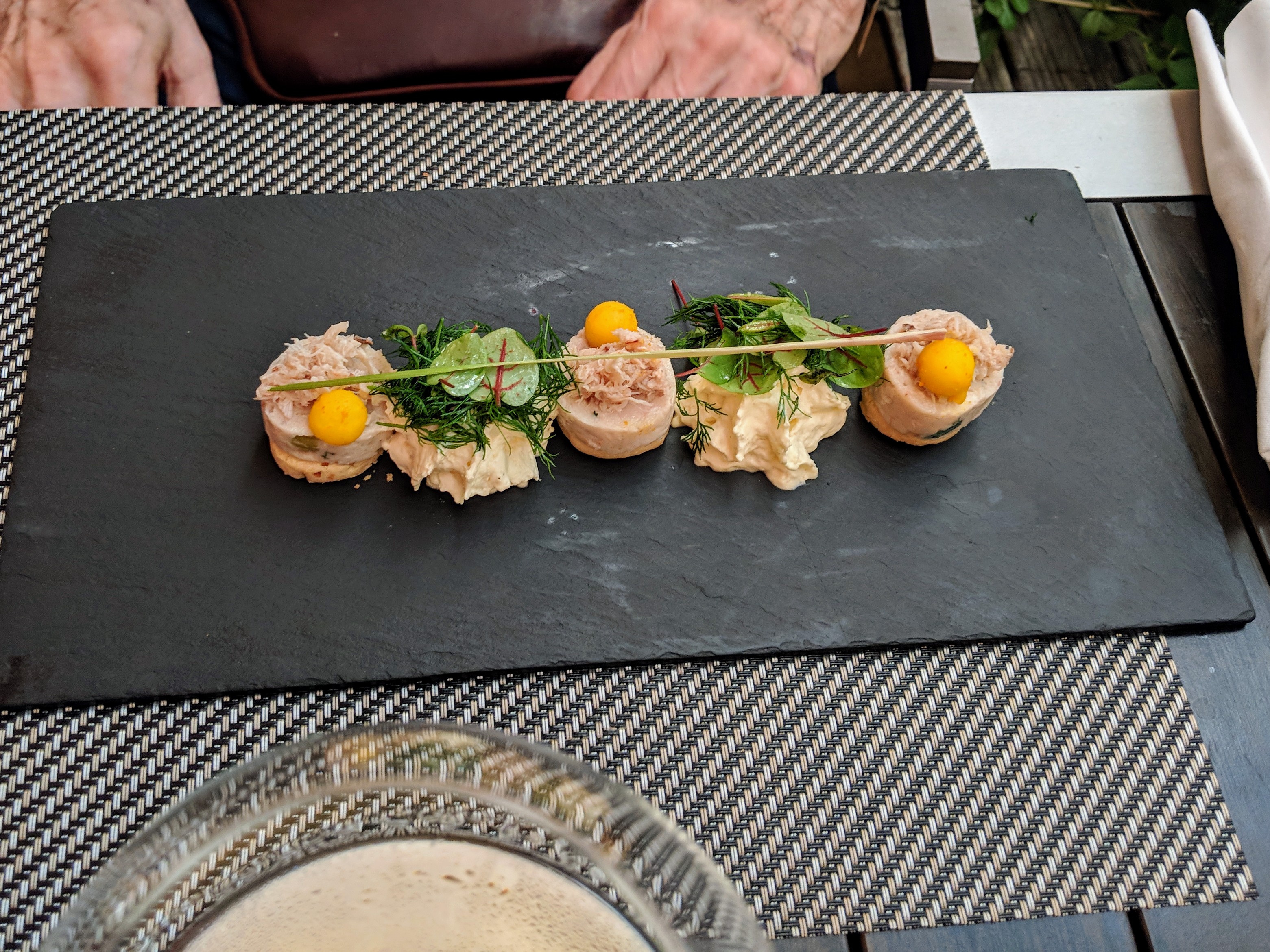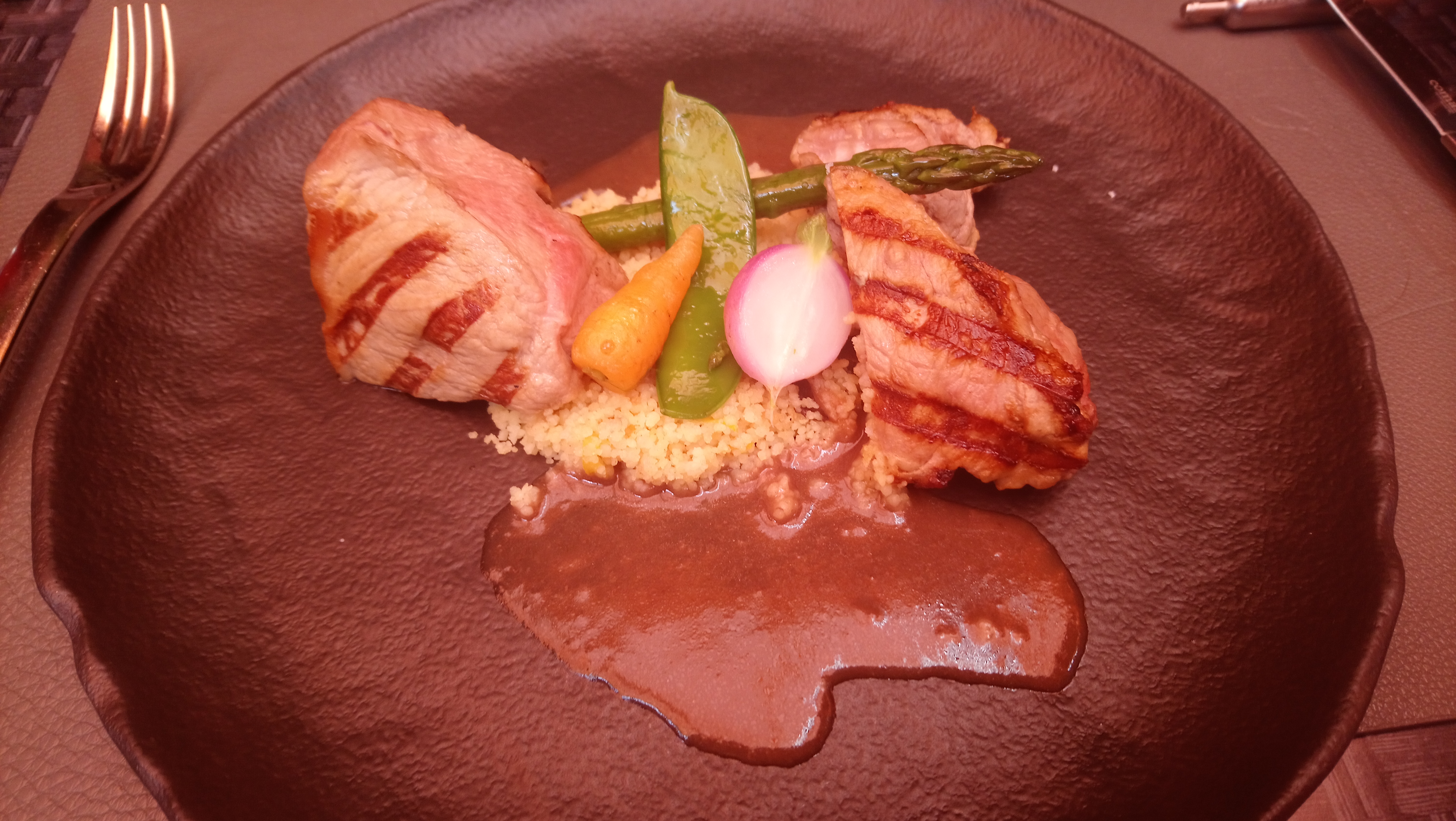 Alors on a avis paradoxale. Le repas etait très raffiné malgré que l'entrée, les bouchées de gambas croustillantes etaient sûrement réchauffés car pas croustillantes... Pour un resto qui veut se donner un genre haute gamme... moyen. La deco est correct mais les services de vaisselles et ustensiles sauf les verres à vin sont plutot kitch et pas approprié au style du restaurant. Le service paraissait désorganisé malgré l'oreillette à chaque serveur. On a eu à faire à tous les serveurs, au total 6 nous amenant parfait ou autre tables des plats qui nous etaient pas destinés. Malgré tout le service a été agréable.