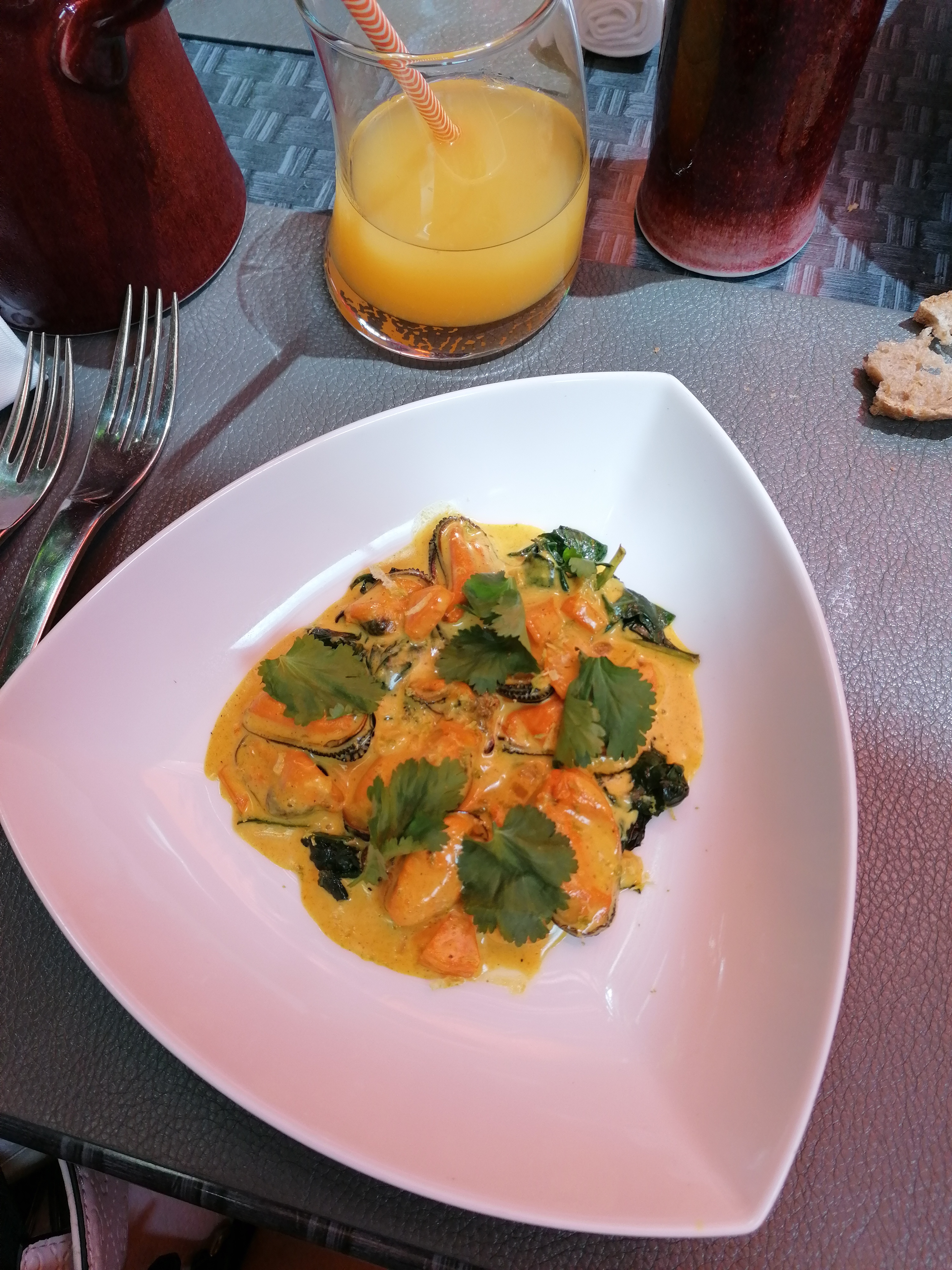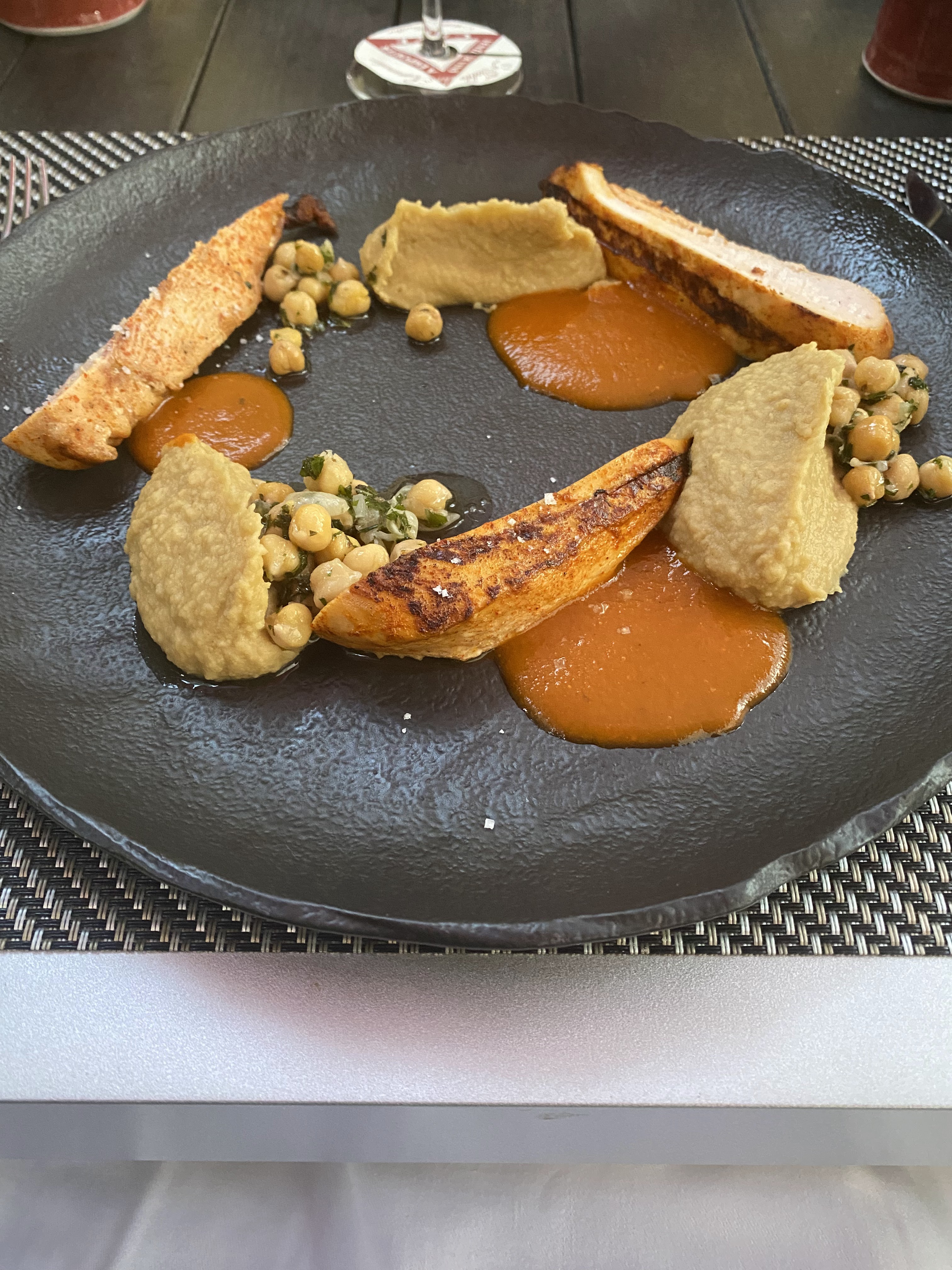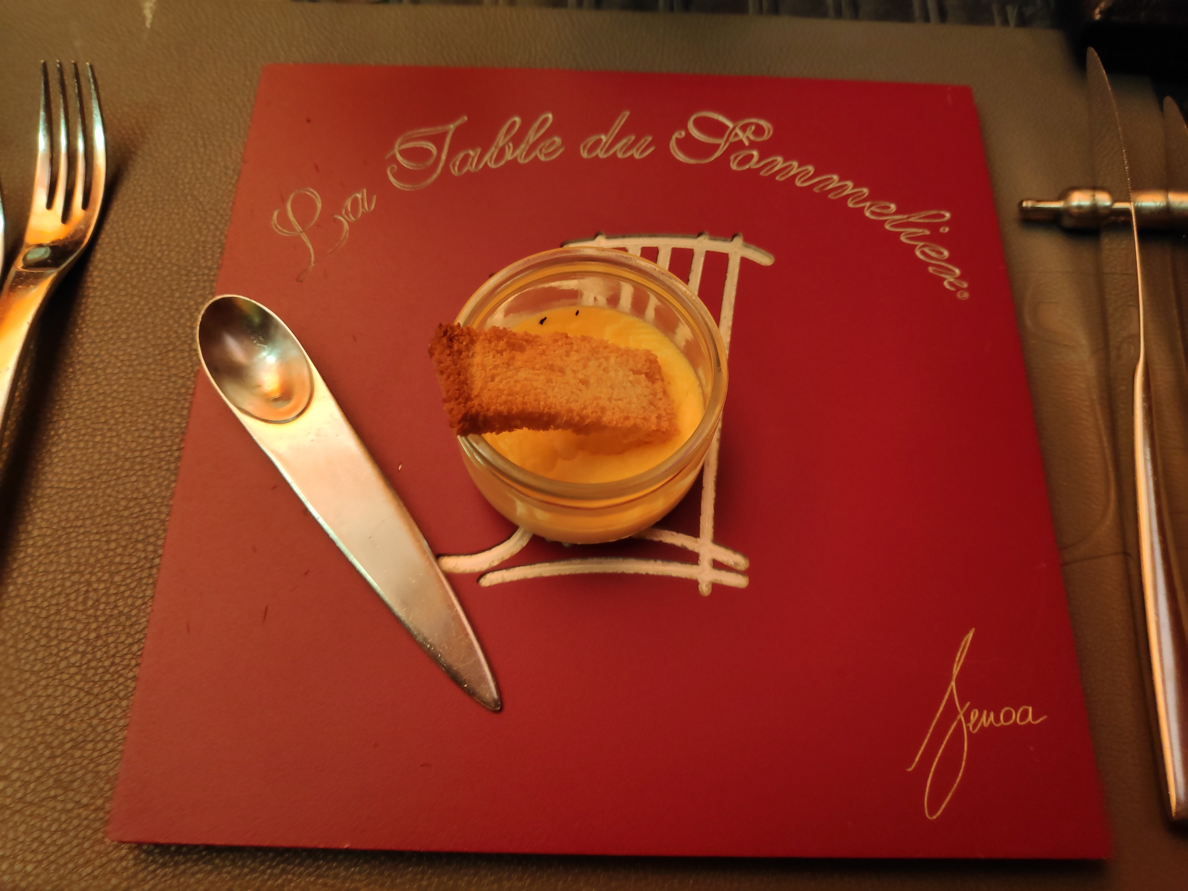 Un très bon repas, avec une multitude de saveurs dans l'assiette dans un cadre plus qu'agréable avec le ton chaud des peintures et du fer forgé et les fauteuils tout confort! Un service très professionnel mais discret!
