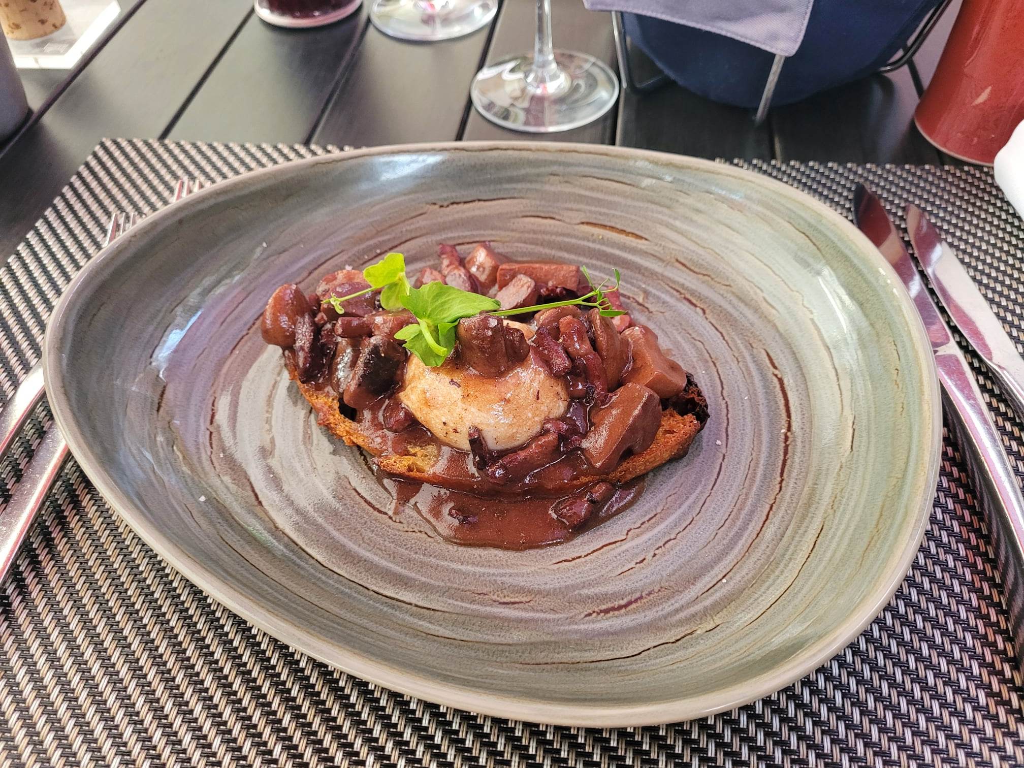 Désolée d'aller à l'encontre de tous ces bons commentaires... Mais pour ma part j'ai trouvé cet endroit très surfait. Beaucoup de cinéma à la mode gastronomique. Cher et décevant par rapport à d'autres très bonnes tables où nous avons mangé lors de notre séjour. Par ailleurs sachez que lorsque vous commandez un verre de vin, même un sommelier débutant sait qu'on doit présenter la bouteille à table et le servir devant le client. On ne voit jamais la bouteille. Je passe sur l'erreur concernant la note de 22€. Avec plat et verre comptés en double parce que cela peut arriver à tous le monde. Ils ont de la chance que je ne mette pas tous dans le même panier.