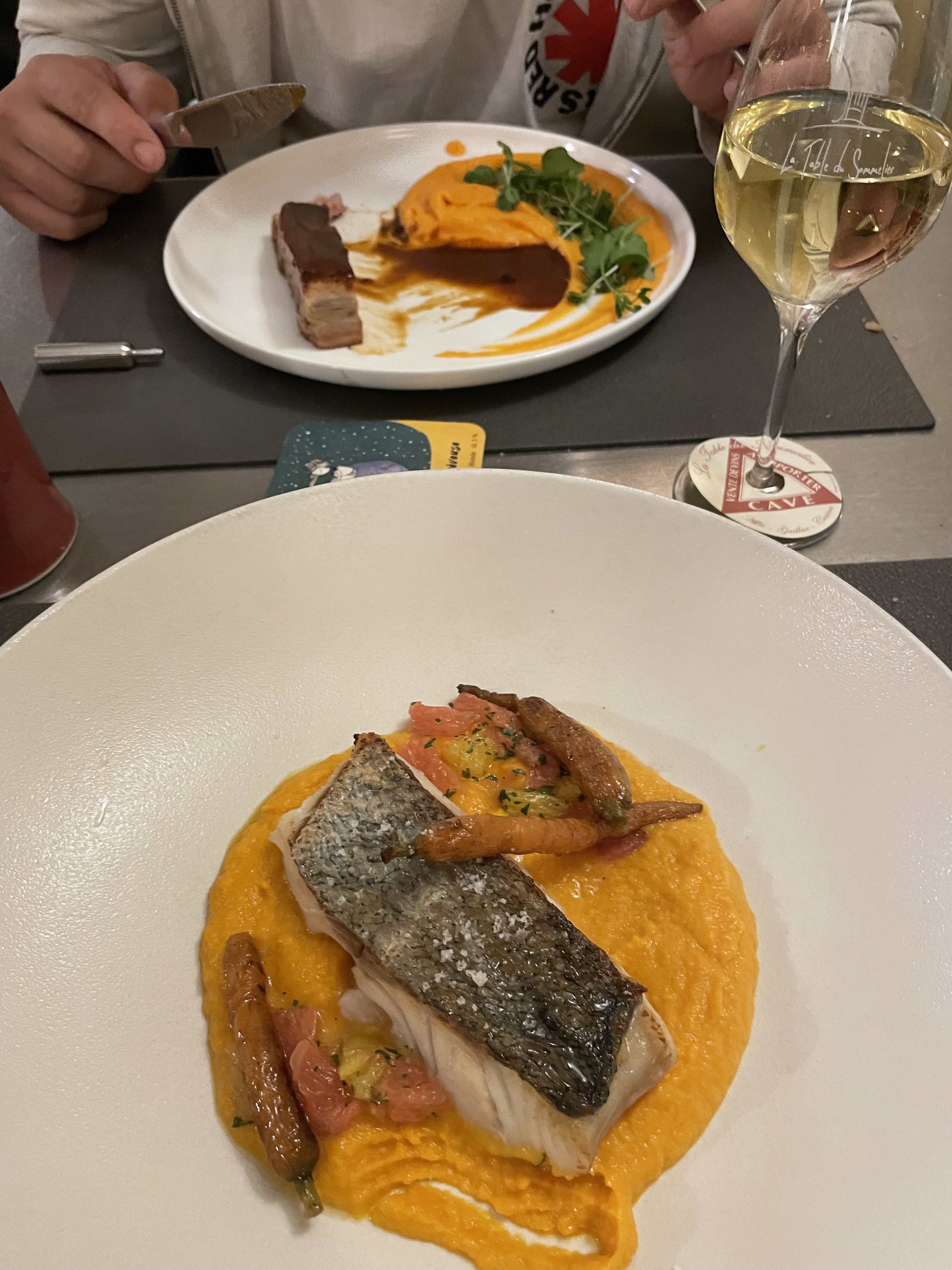 Une très bon restaurant, le personnel est disponible et agréable. L‘entrée et le dessert sont un délice, nous sommes restés un peu déçu de notre plat. Les assiettes sont très généreuses, les gourmands vont se régaler, si vous mangez moins attention au quantité. Une jolie restaurant avec des vins qui accompagne parfaitement les plats proposés 🙂