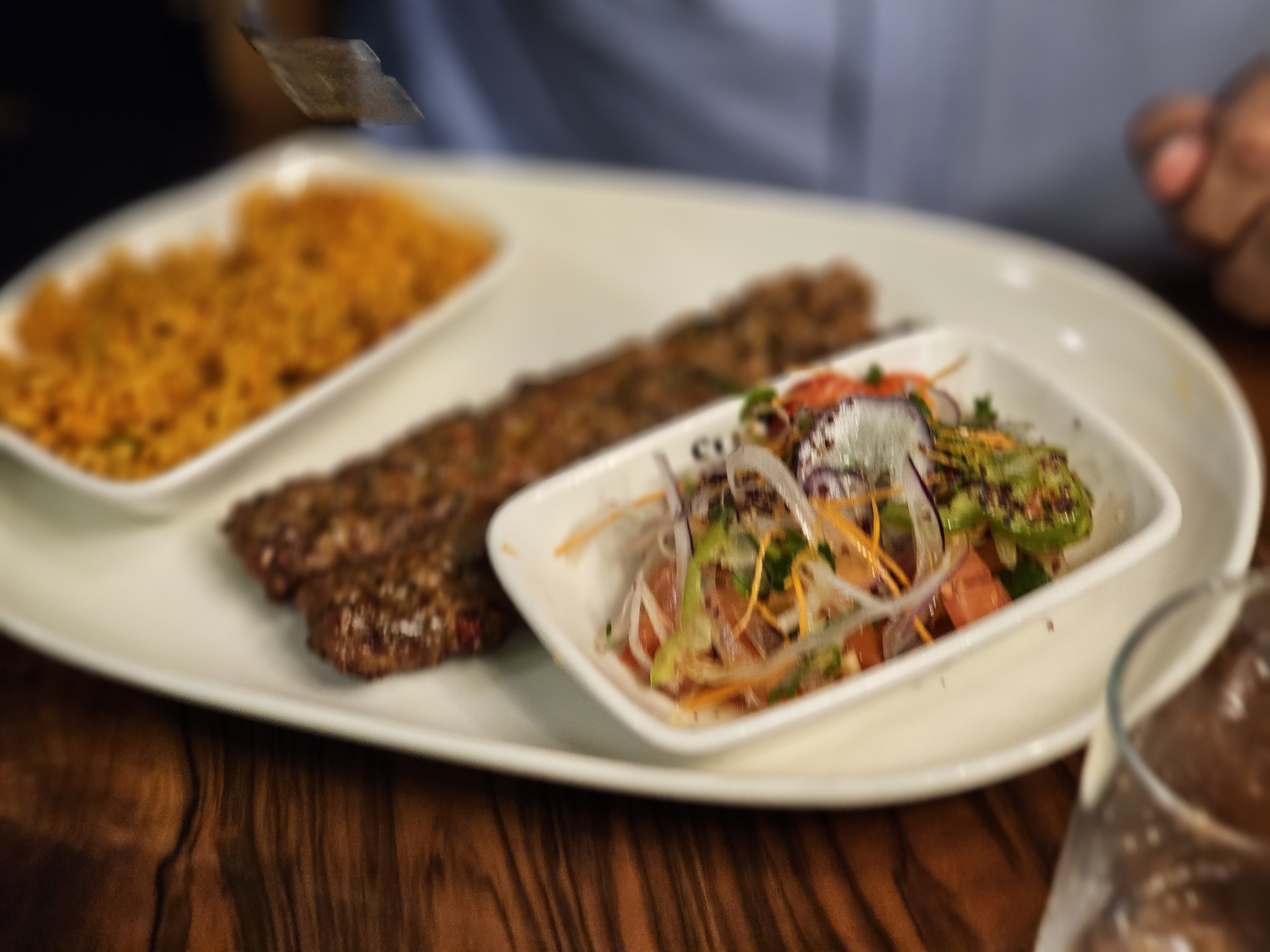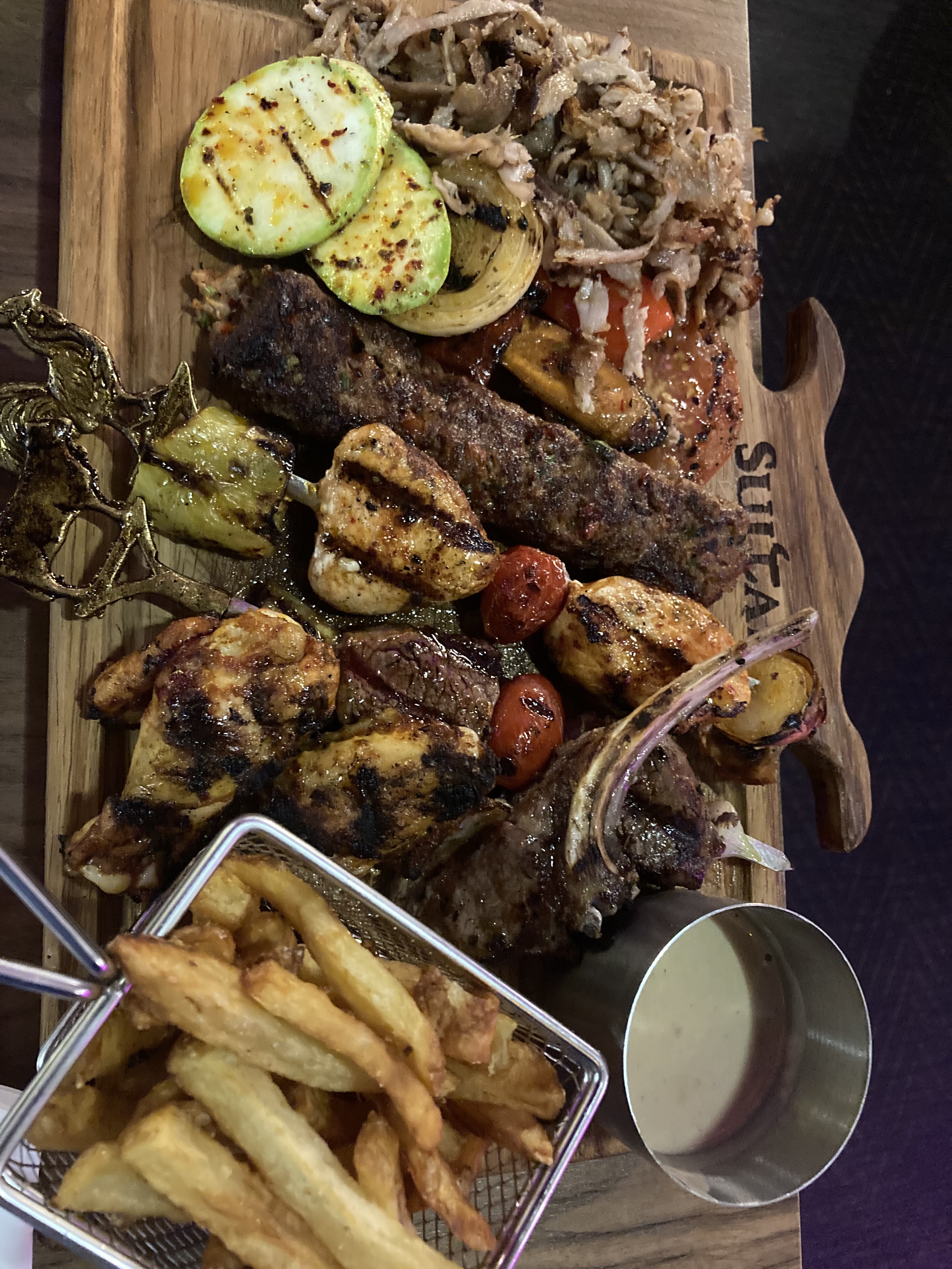Rien à dire, appart du bien, la viande super bonne, le service excellent, les plateau sur lesquels sont servie les plats, entree et dessert copieux, belle accueil, danseuse orientale, franchement à faire. Je recommande et les prix sont raisonnable, l endroit stylé même les chaises sont trop confortable on est vraiment bien là bas que sa soit en famille, en couple ou entre ami c est vraiment un restaurant à faire
