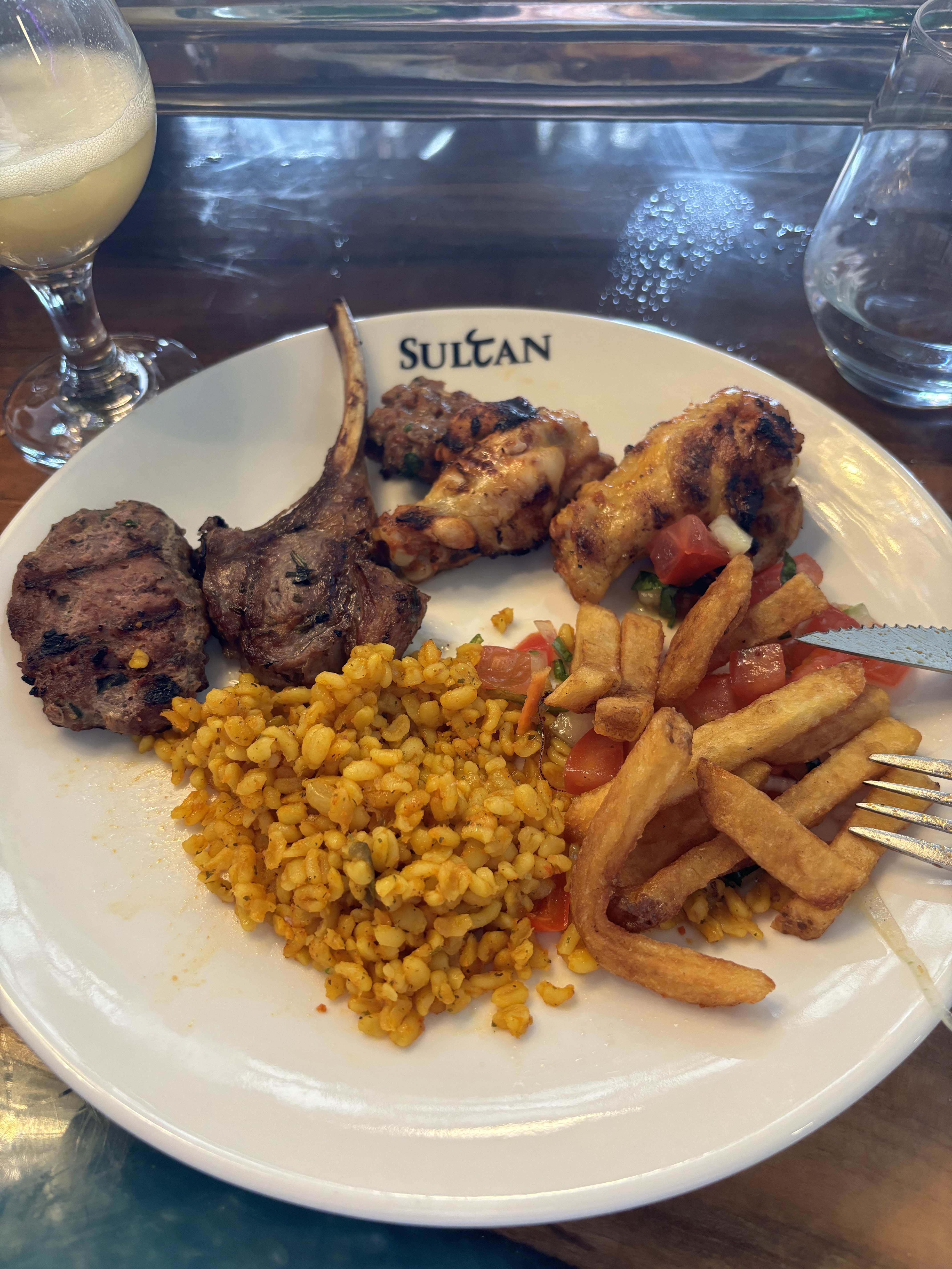 Avis Google surprenant !!! N’a de table du sultan que le nom… Plat prit mixte grillade, je suis certain que n’importe quel kebab est capable de réaliser cette assiette !!! 30€ une aile de poulet une côtelette, deux morceaux d’agneau sur une brochette, deux morceaux de poulet sur une brochette, attention l’es brochette sont jolies 🤩, kebab et un Adana je pense. Accompagnement boulgour et légumes grillés ( n’imaginer pas des légumes cuisinés, grillés ils le sont) un morceau de poivrons, un morceau de courgette, un morceau d’oignon et un morceau de carotte je pense ne rien avoir oublié. Ayran 3€ sur la carte 3,5€ sur l’addition. Prochaine fois Saint Antoine 😉
