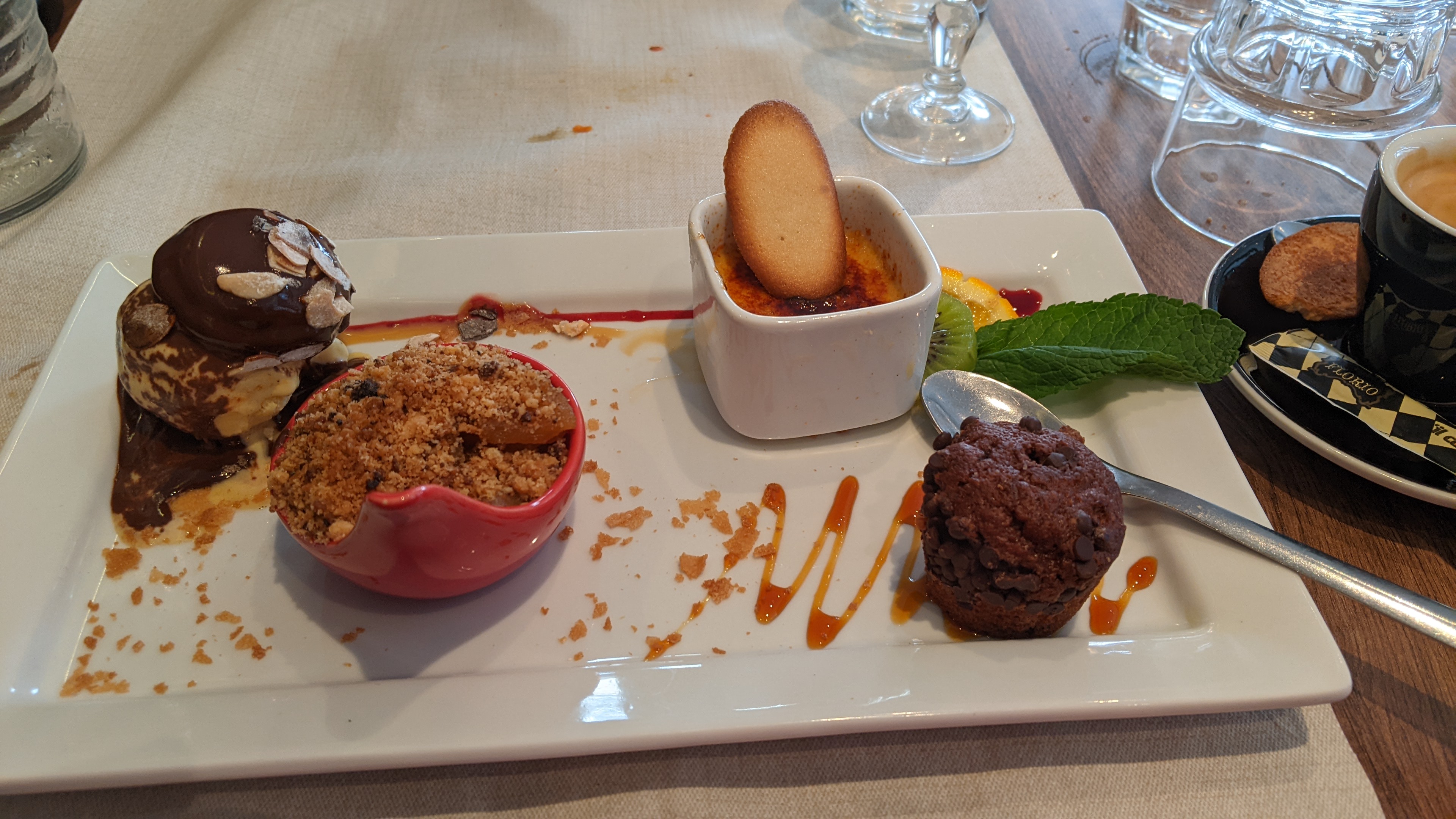 Petit repas du soir en famille. Le lieu est chouette et nous sommes tombés sur un serveur souriant et très sympa. Nous avons tous les 4 très bien mangé. Le restaurant était plein ce soir mais nous n'avons pas trop attendu nos plats, qui étaient très réussis. Mention spéciale pour les desserts. Mon café gourmand était excellent et a fait des envieux 😉