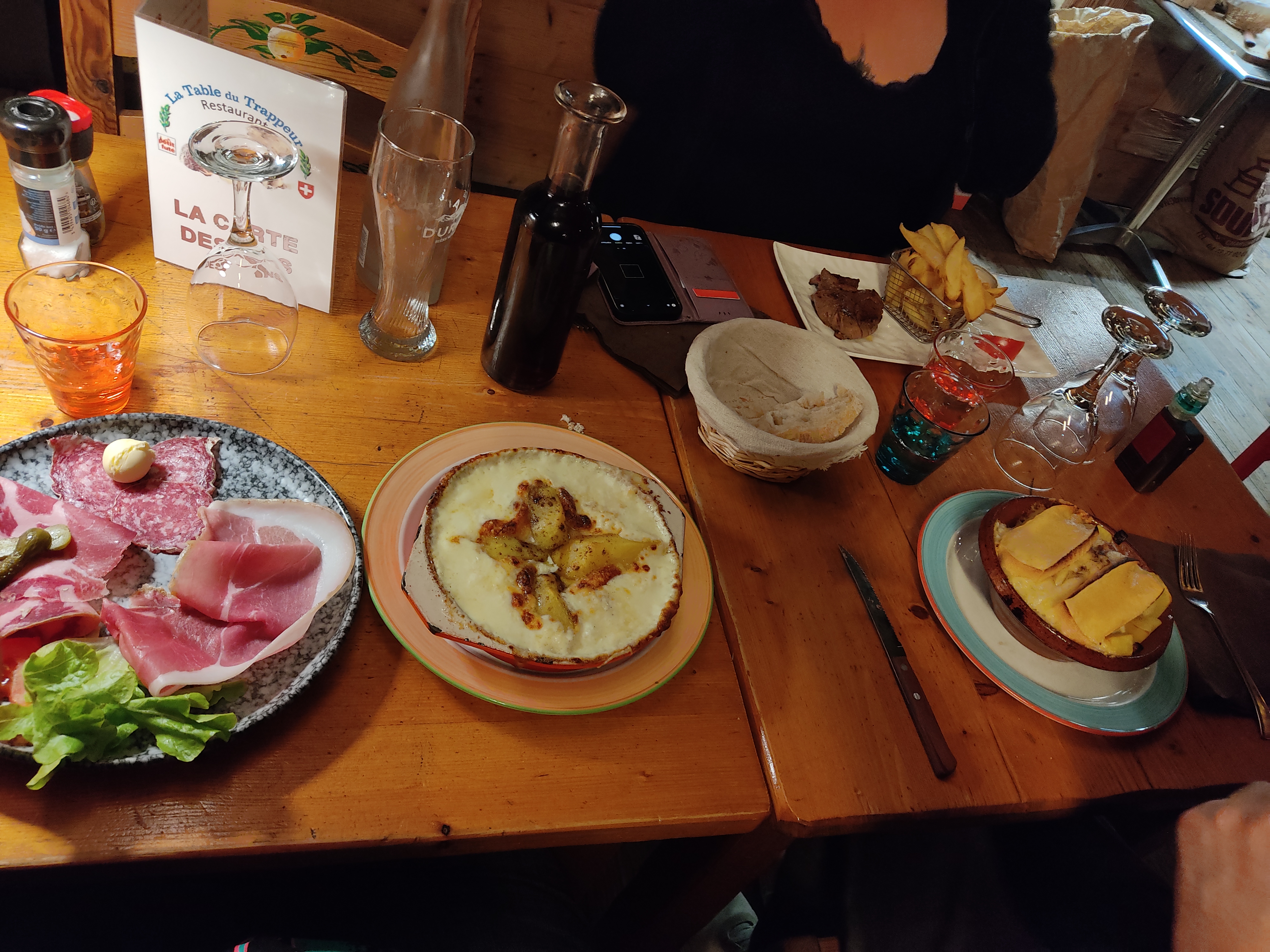 C'est un excellent restaurant . Fondu chaude et bonne. Les salades copieuses mais facile à finir. Il n y a pas de surplus de salade comme dans certain resto. Une petite touche du serveur qui m'a changé la serviette pour deux goutes de jus de fruit. En regardant les voisins si on ne finit pas la charcuterie on peut la ramener. C'est un bon geste pas de gaspillage et le client rentre avec les restes . Nous recommandons fortement.