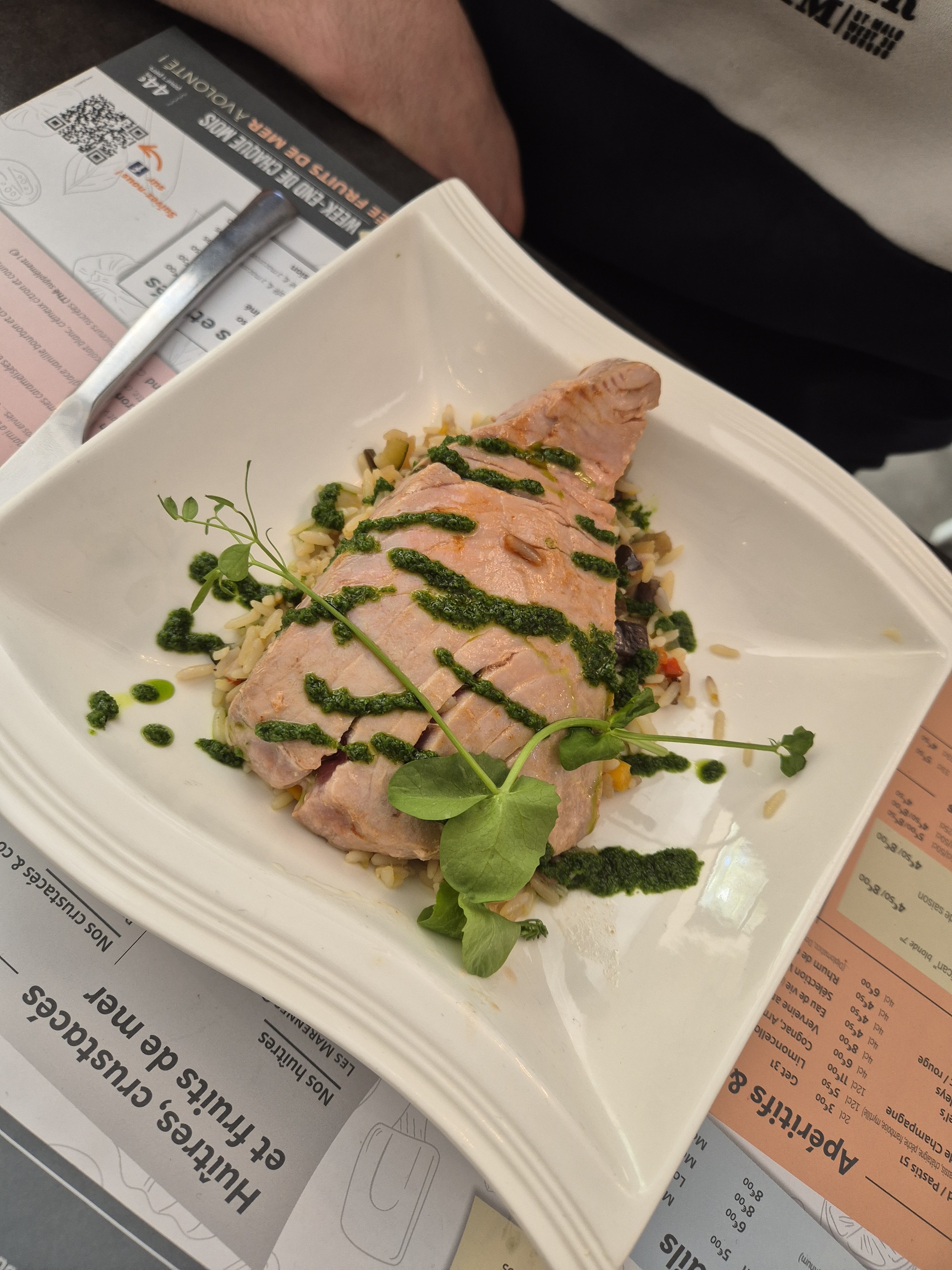 Beaucoup de choix en viandes, poissons et fruits de mer. Produits frais, plats délicieux. Le service était également très sympa, personnel très accueillant et attentif. La salle est très jolie et s'il fait beau l'extérieur est aussi très agréable.