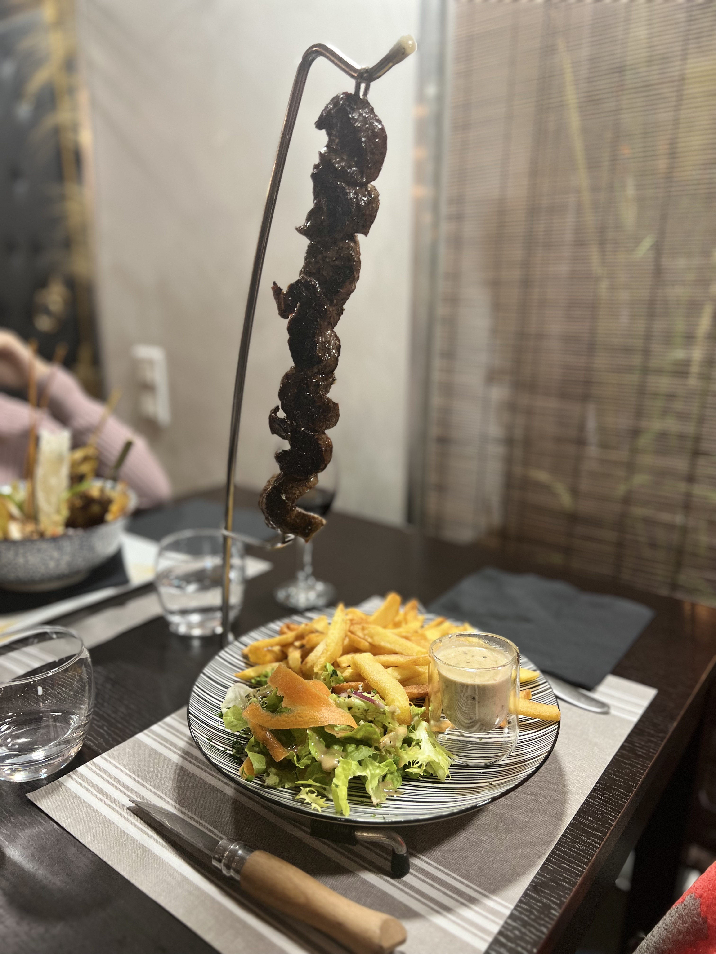 Très bon plats brochettes de bœuf ou autres succulentes patron et patronne souriant et sympa