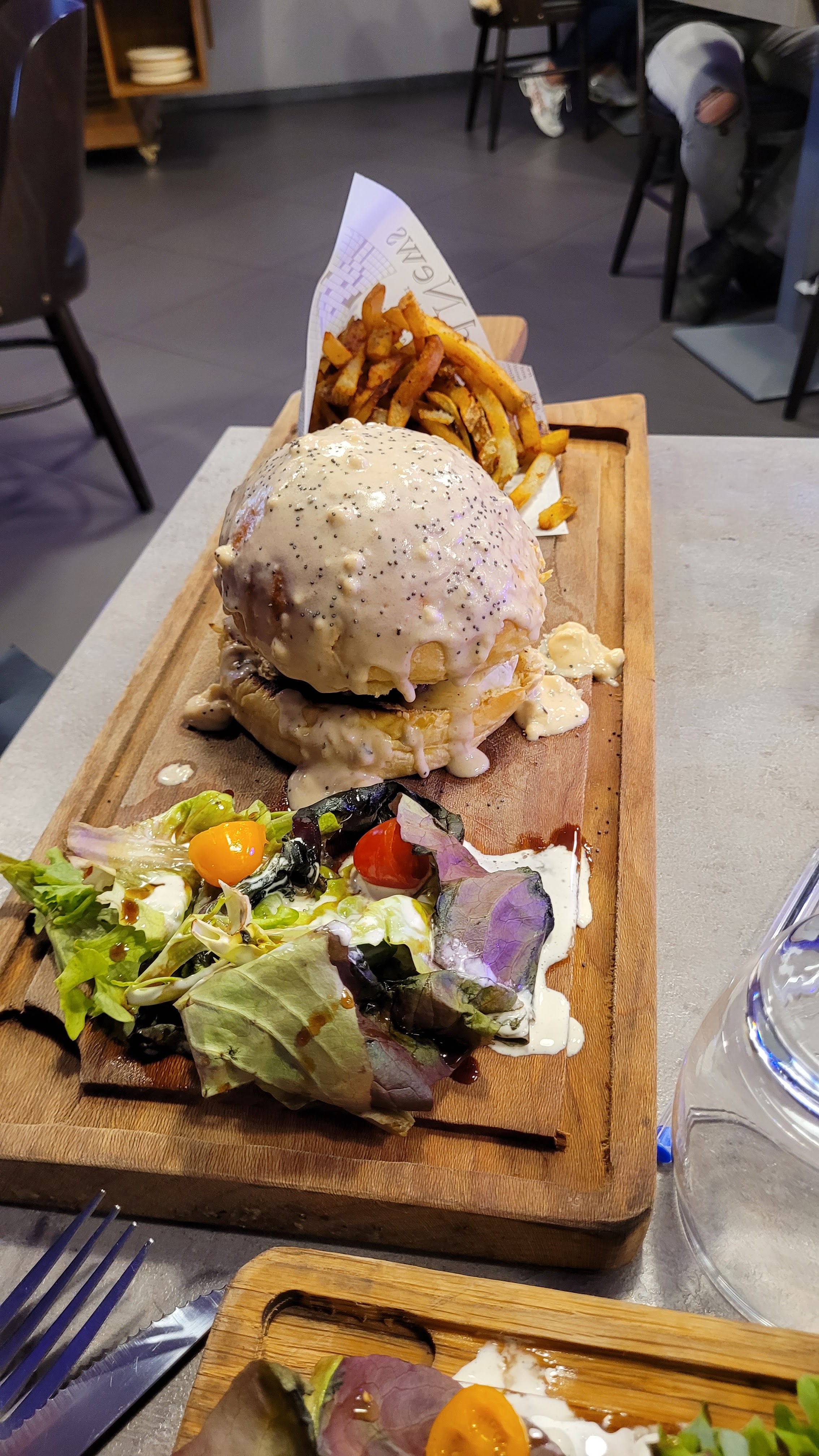 Bonjour, Super restaurant le serveur était au top 👌 la cuisine était super bonne j’ai pris un burger il était excellent super bonne ambiance.