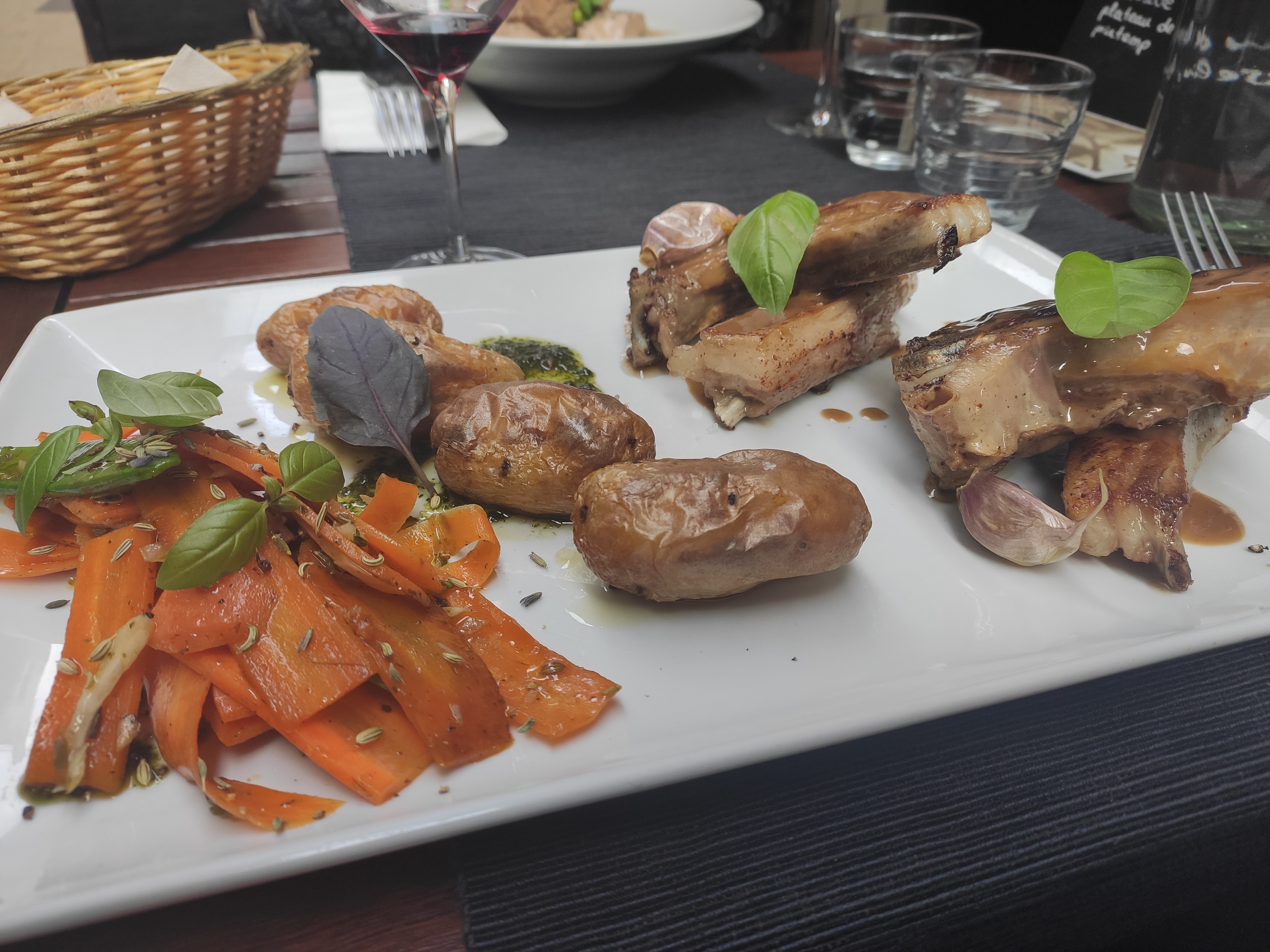 Nous avons pris une formule du midi, Plat gouteux et équilibrée, vin rouge bien adapté au plat, dessert léger et gourmand, Si j'habitais dans cette ville, ce serait un lieux dans lequel je viendrais souvent.