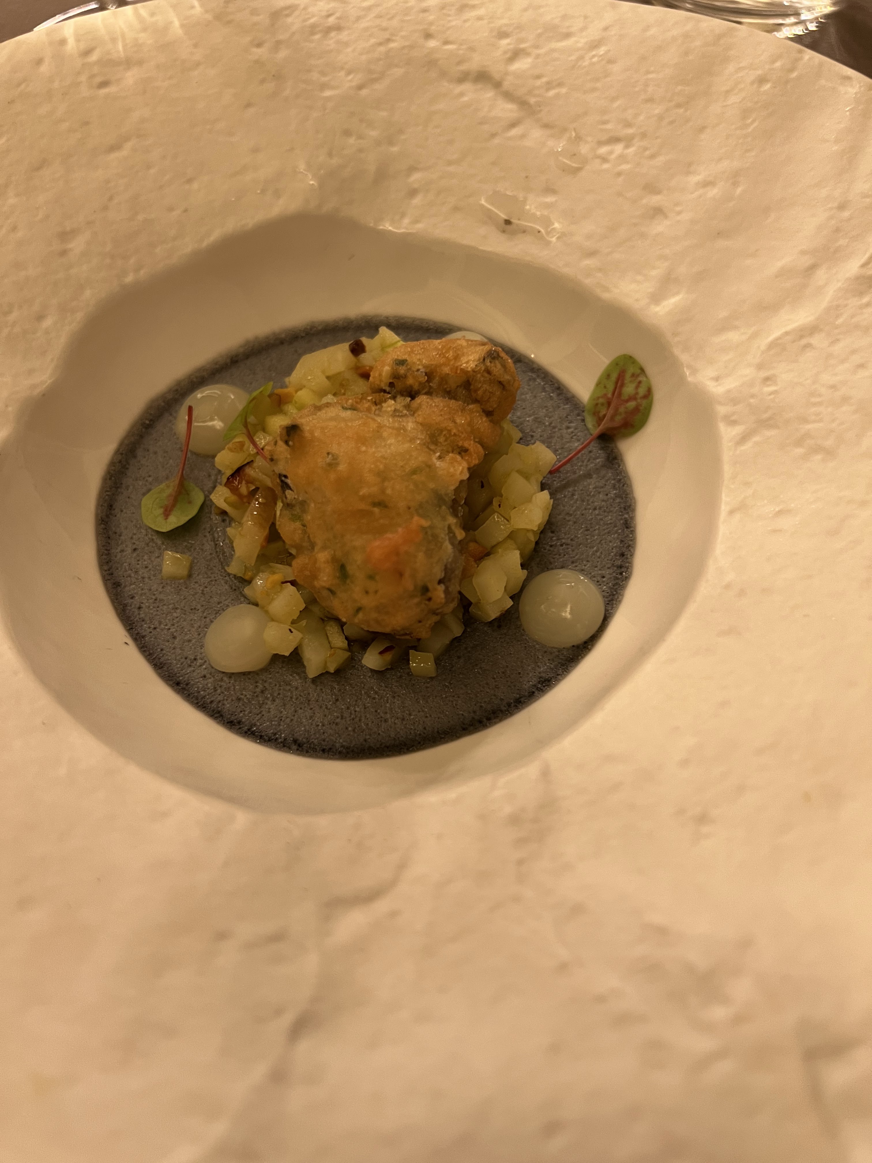 Très bon moment. Nous n’avons rien à redire sur le repas, nous avions choisi le menu 7 mêts découverte (le chef nous surprend avec des plats non connus à l’avance), pas de déception, un bel accord mêt et vin. Merci au chef Nous enlevons une étoile car l’environnement ne correspond pas au standing du restaurant et du domaine. Mousse sur la terrasse, allée jonchée de feuilles et mauvaises herbes … quel dommage! Une borne de recharge VE serait un plus