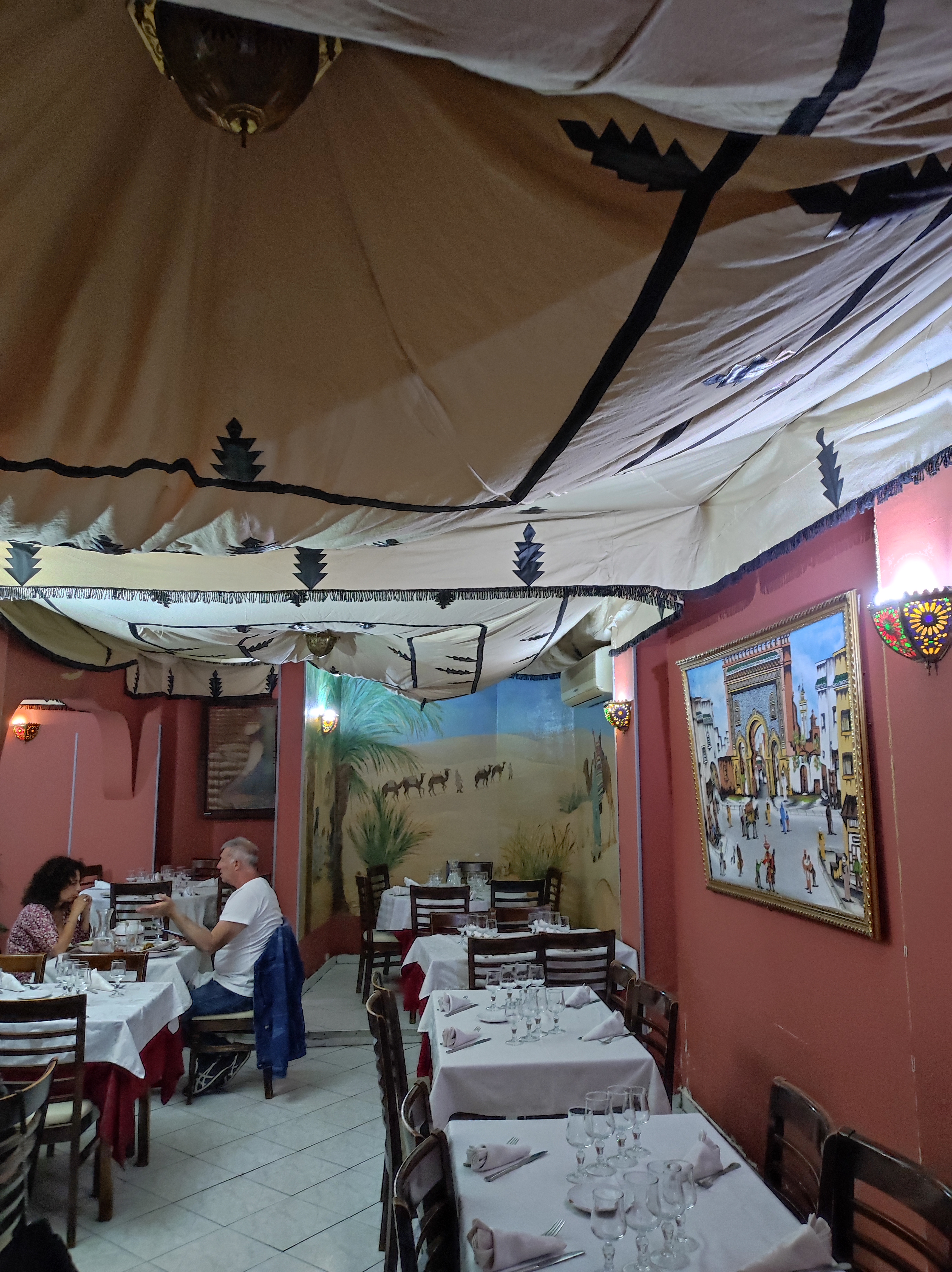 Lieu à la decoration typique, cuisine toujours très bonne, couscous et Tajine, copieux et savoureux. Accueil agréable et pâtisseries très bonnes. 1 étoile en moins pour le prix du plateau de patisserie (un poil cher !)