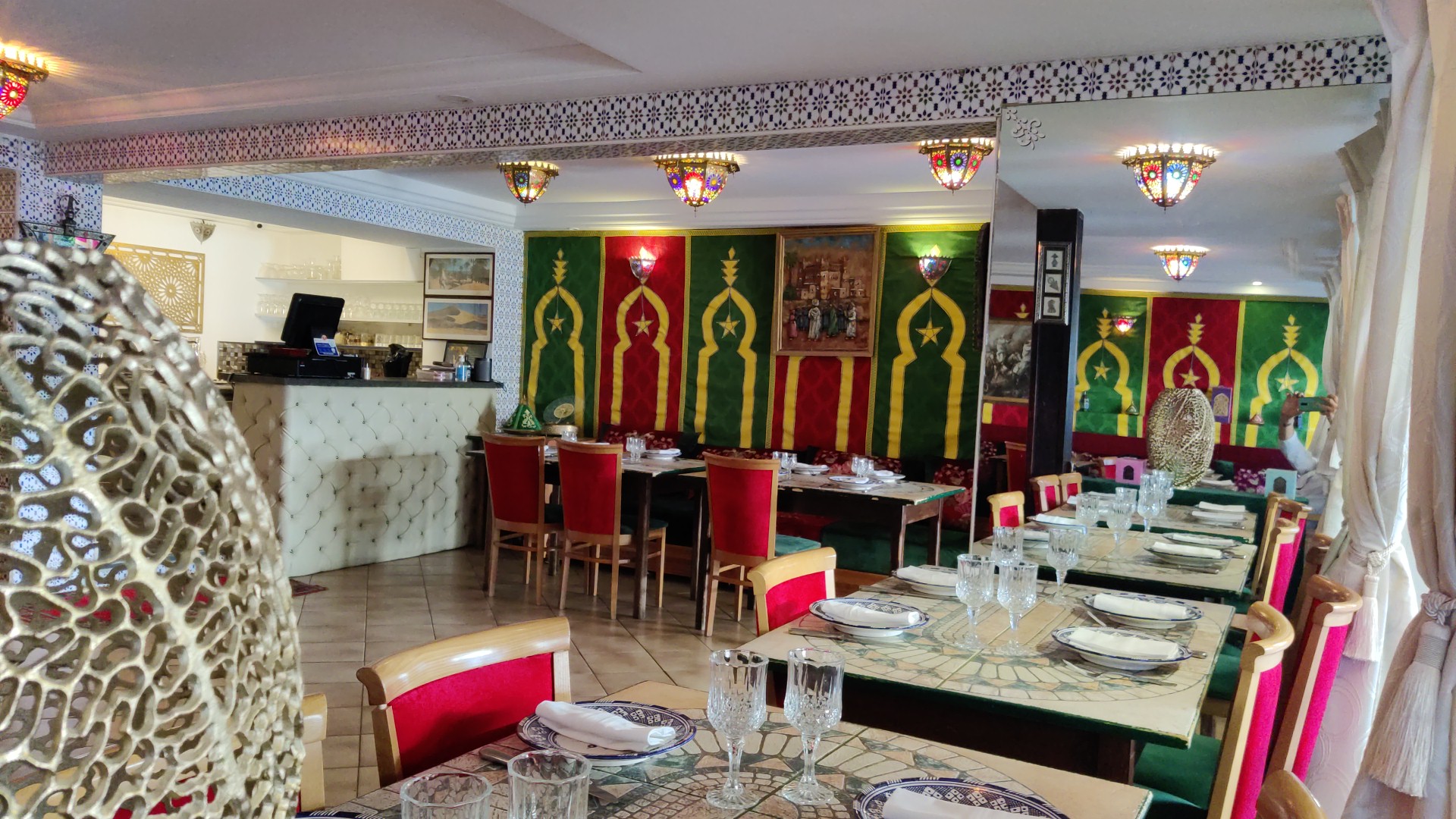 Nous avons dîner hier soir avec mon fils, très bonne soirée et accueil. couscous impériales succulent, et pour finir les pâtisseries marocaines. Les gestes barrières sont respecté et passe sanitaire demandé, contrairement à certains restaurant du boulevard et hôtel avec restauration . Vous pouvez donc déjeuner ou dîner A là table marocaine sans problème.