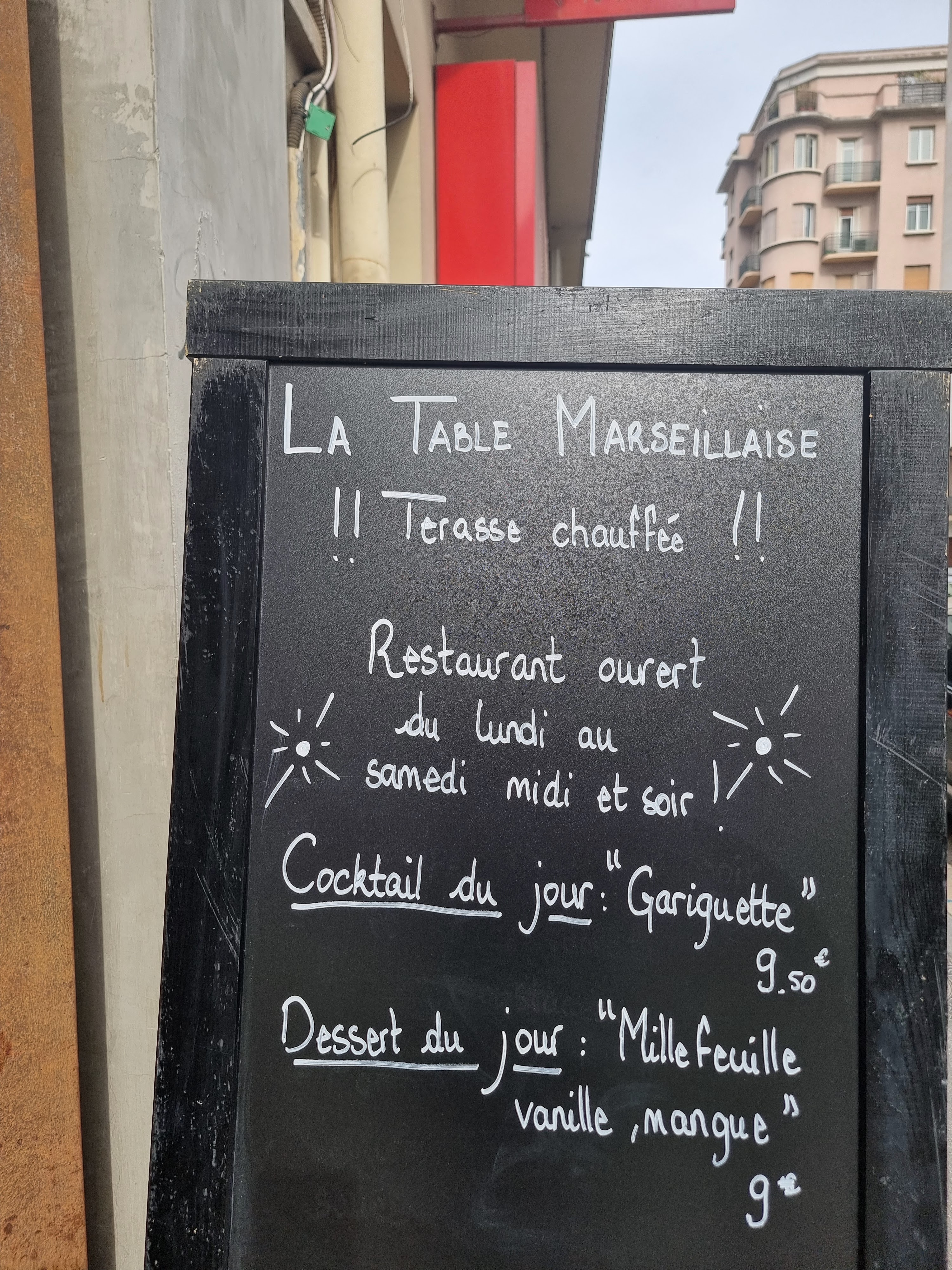 Bonjour. Nous y sommes arrêté ce midi pour goûter quelques plats... et bien franchement nous reviendront ...nos papilles gustatives ont été ravies...aller petit bémol nous aurions bien manger un.peu plus de poulpes.... mais sinon au top... nous reviendront... bientôt oui ! @merci la table Marseillaise