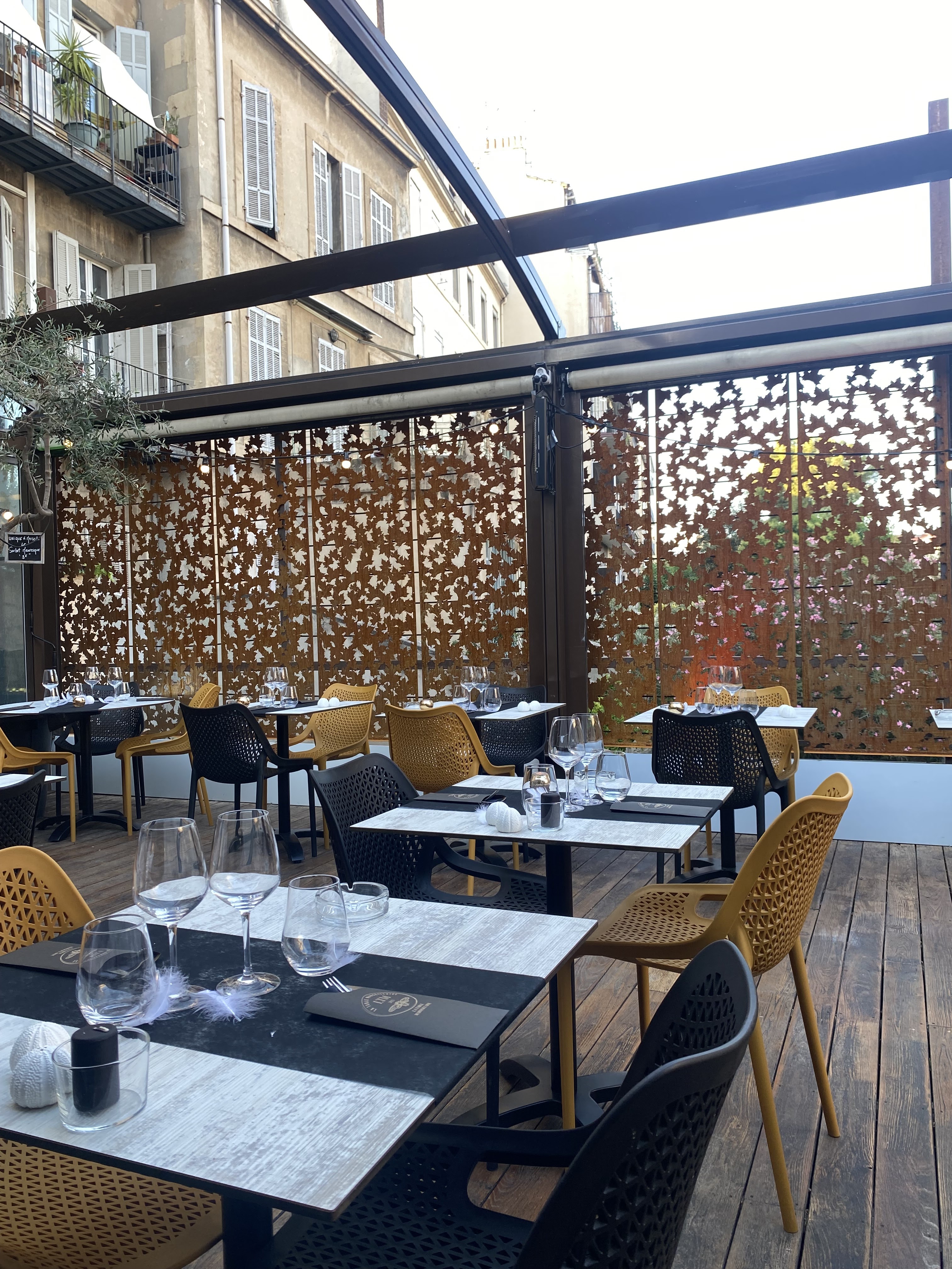 Parisiens et de passage à Marseille, nous avons adoré la cuisine de cette table. Habitués du Michelin, nous avons été surpris par la qualité des plats particulièrement raffinés. Le chef est aussi pâtissier et c est un régal. L entrée ne paye pas de mine et c est peut-être tant mieux pour nous. Une belle terrasse cosy à l arrière au calme. Nous reviendrons c est sur!