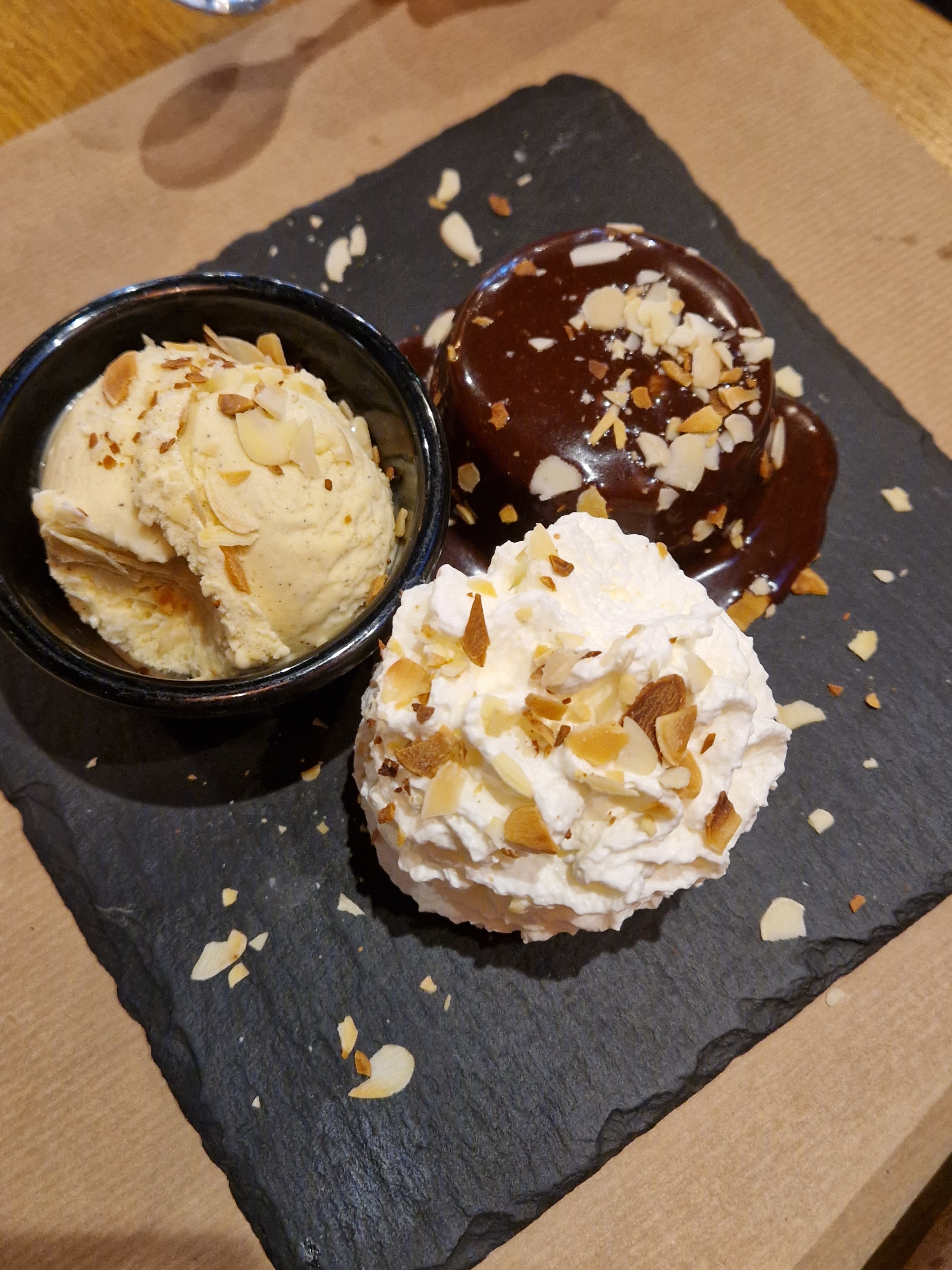 Le restaurant est très bon sauf le désert j’ai pris un tiramisu au NUTELA et il n’y avais que le la Cèmme (au nutela)il y avais pas trop de goût mais sinon les serveurs hipper gentil et les plats aussi .