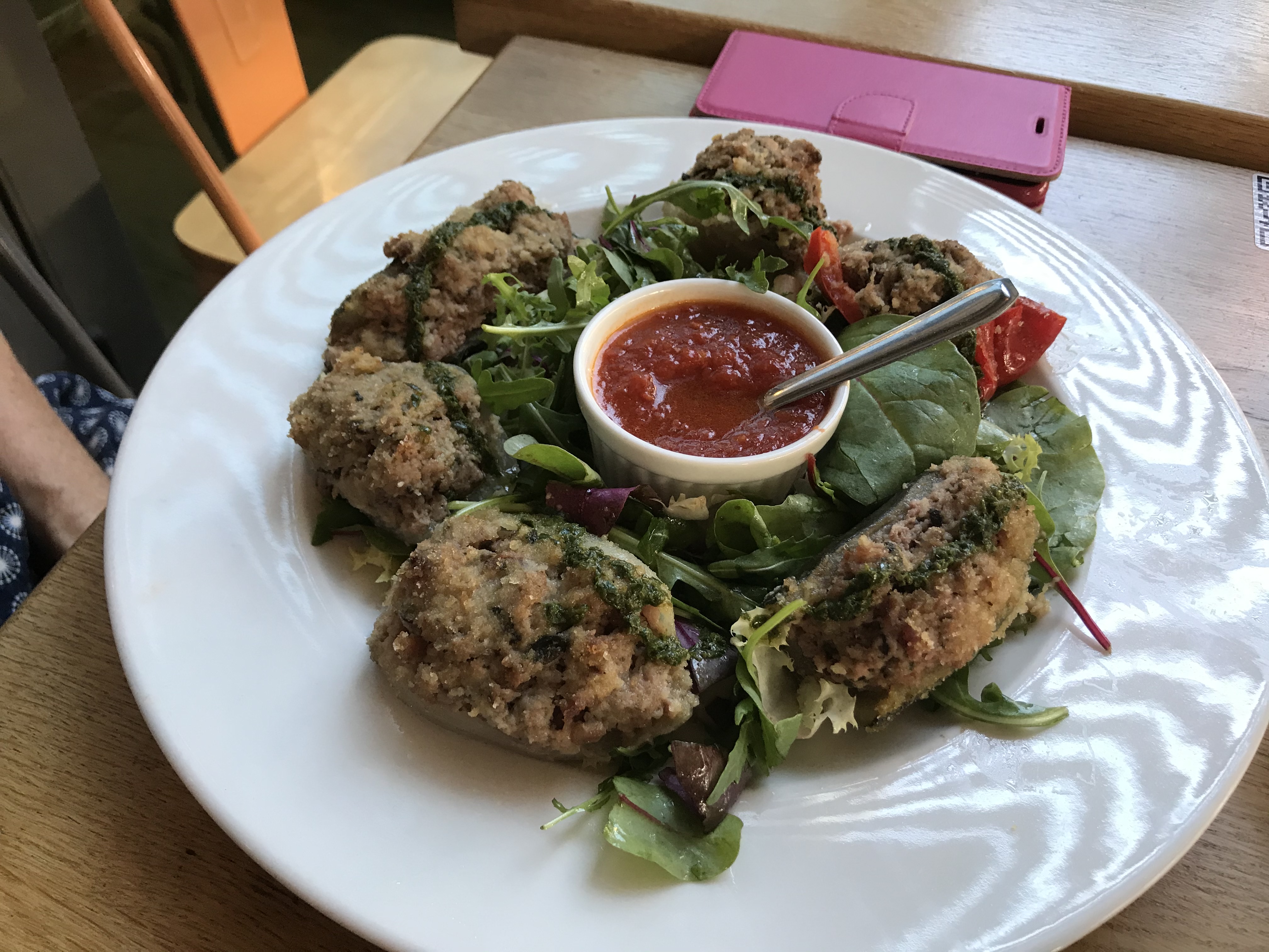 Salade cesar avec poulet pané froid. Salade verte oxydée. Je suppose qu’elle a été préparée à l’avance et en attente dans le frigo. Sauce sans goût. En revanche la salade de chèvre était bonne. Service rapide.