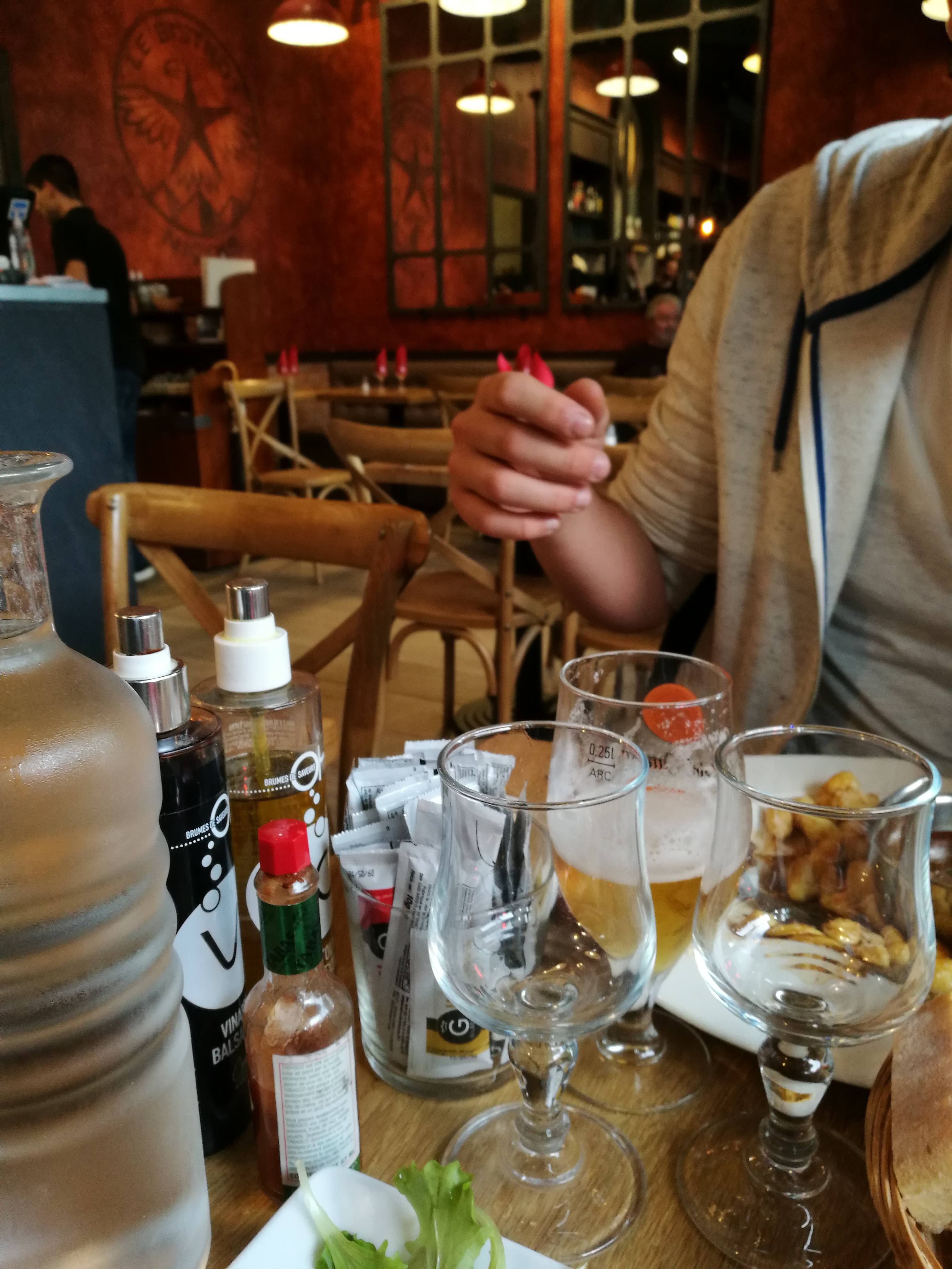 Nous sommes arriver à 11h45 nous avons dû attendre 12h pour avoir un truc à boire .15 euro la salade de chèvre chaud avec 3 petit samoussa de chèvre 3 tranches de tomate 2 tranches de jambon cru et ..... 2 tonnes de roquette. Mon fils avais fini son assiette que moi j avais toujours pas eu ma salade. Dommage