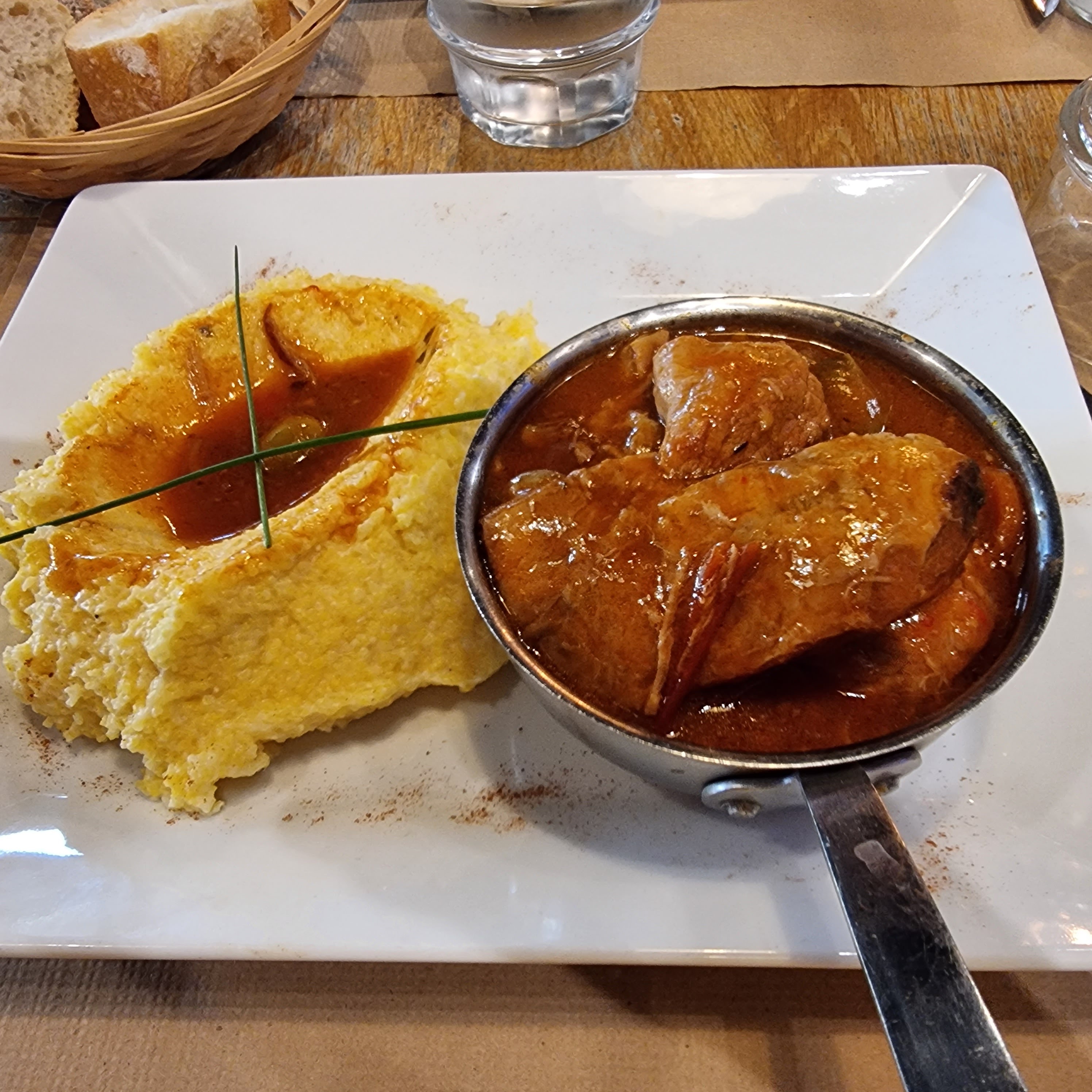 Nous avons appréciés la cuisine, j'ai un doute sur du fait sur place , mais très bon. Daube de veau accompagné de polenta