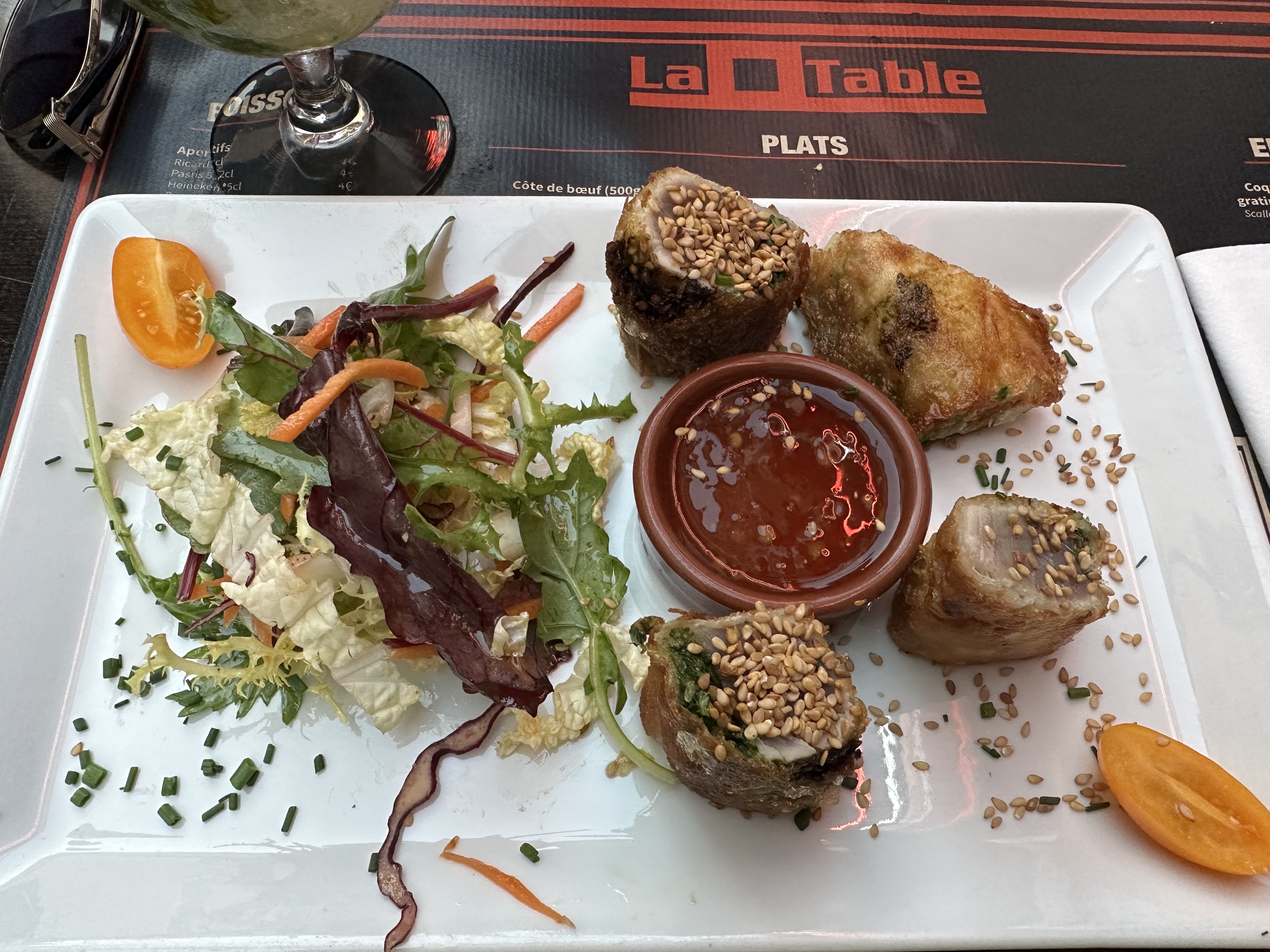 Nems de thon mi cuit et côte de bœuf INCROYABLE !!!!! Petit restaurant situé à 2 pas du bord de mer dans une petite rue loin de la circulation. Ambiance familiale.