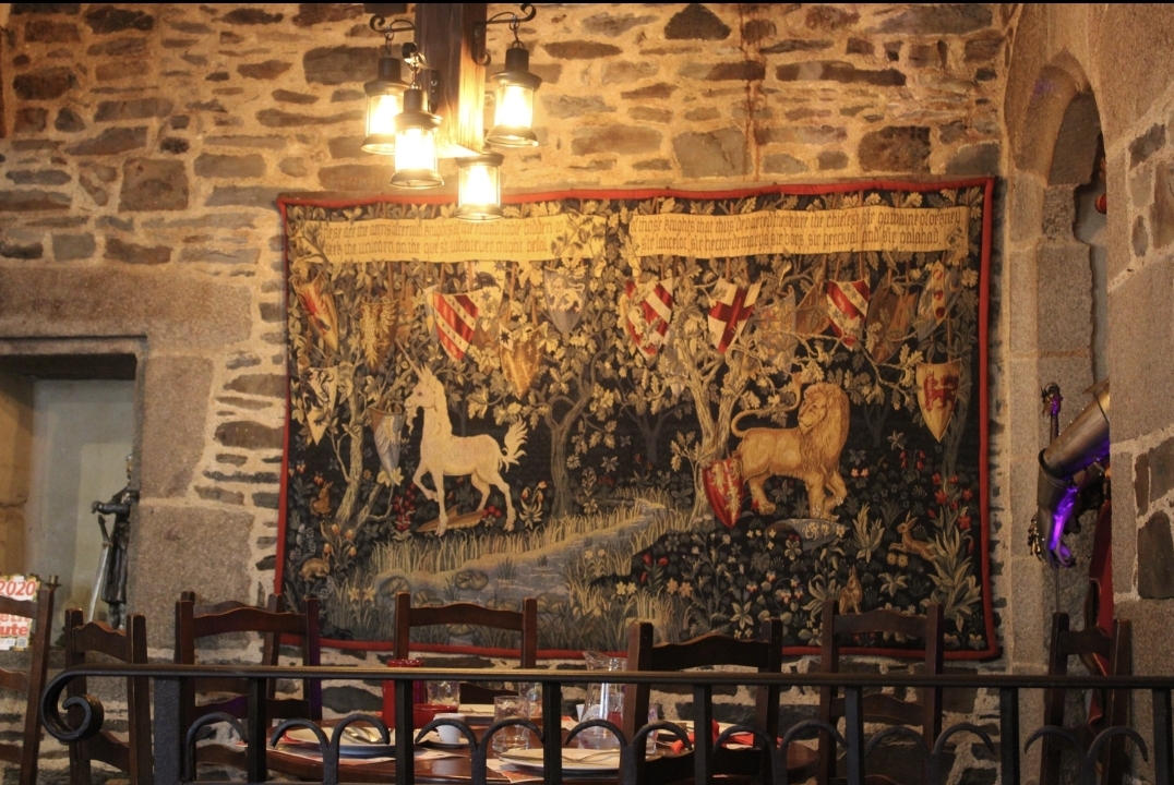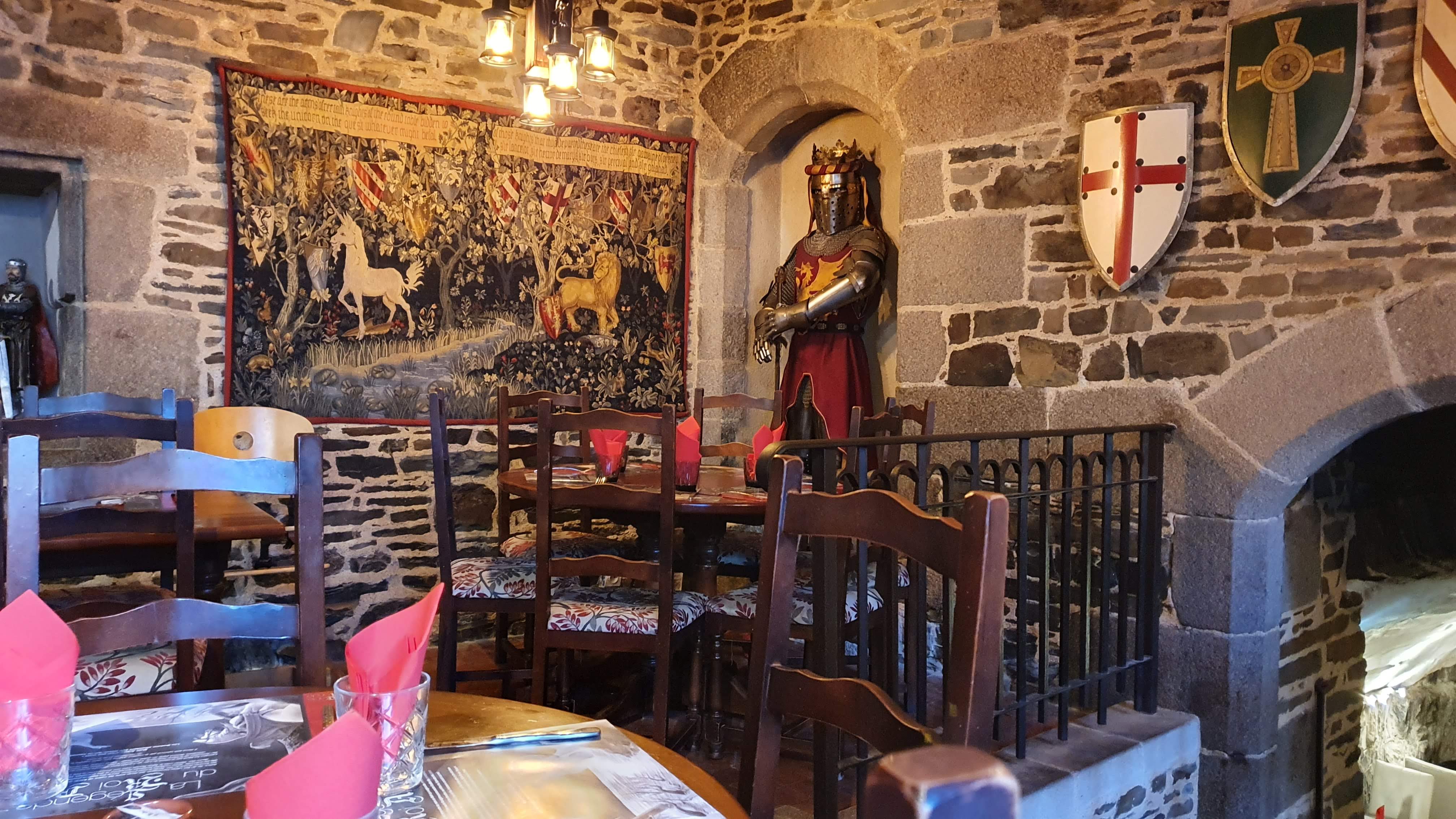 Superbe restaurant ! Sitôt la porte passée, on remonte le temps pour se retrouver à l'époque du Roi Arthur. Les plats, variés et délicieux, permettent de découvrir les spécialités bretonnes. Une superbe tapisserie raconte la légende arthurienne. L'ambiance est chaleureuse, et, bien-sûr, dans la grande salle, nous trouvons quelques tables rondes. Service soigné, plats généreux.