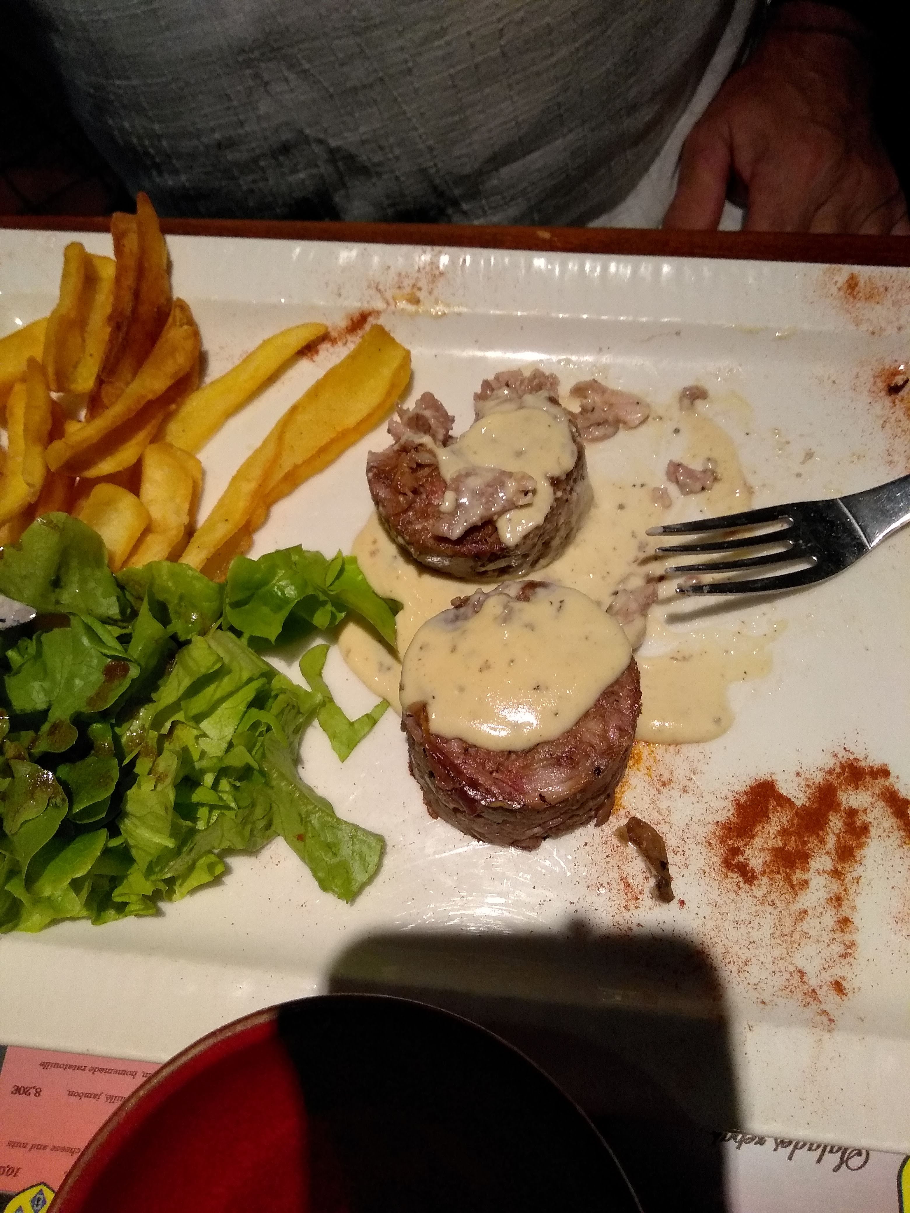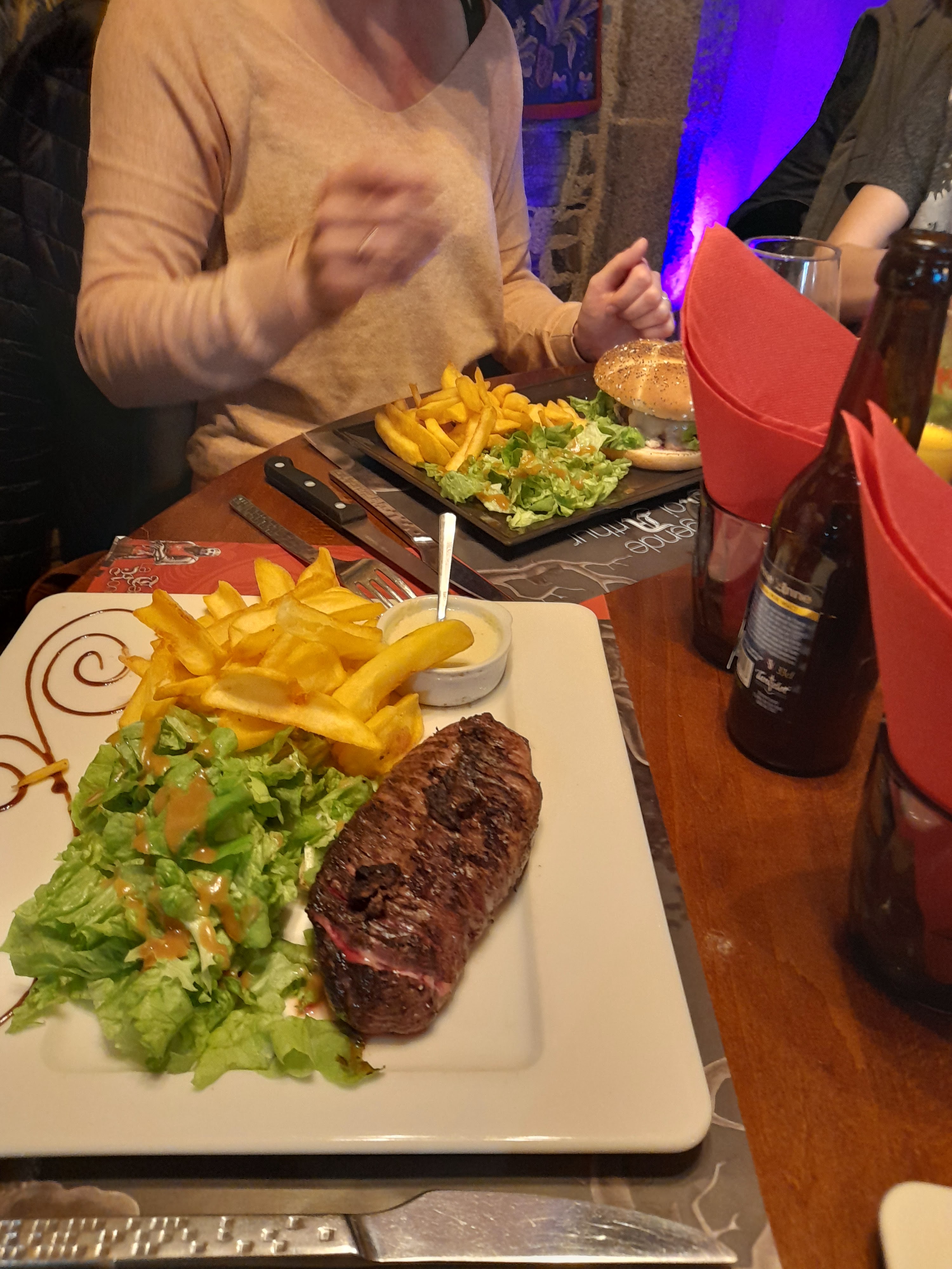 Nous étions deux couples d'amis. Tout était très bon, et très copieux. Même du mal à terminer. Le service souriant, bonne équipe, et pas d'attente. La serveuse nous a conseillé deux assiettes de charcuterie au lieu de trois car çà ferait beaucoup. C'est très honnête et avons apprécié ce conseil. Les frites très bonnes, pas sèches. Les quantités servies, et la qualité des ingrédients peuvent peut être expliquer le prix assez élevé, mais, avec la crise actuelle, quels sont les prix qui n'ont pas flambés ?